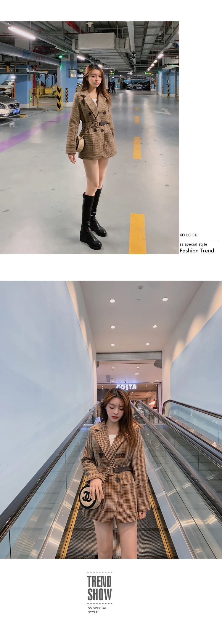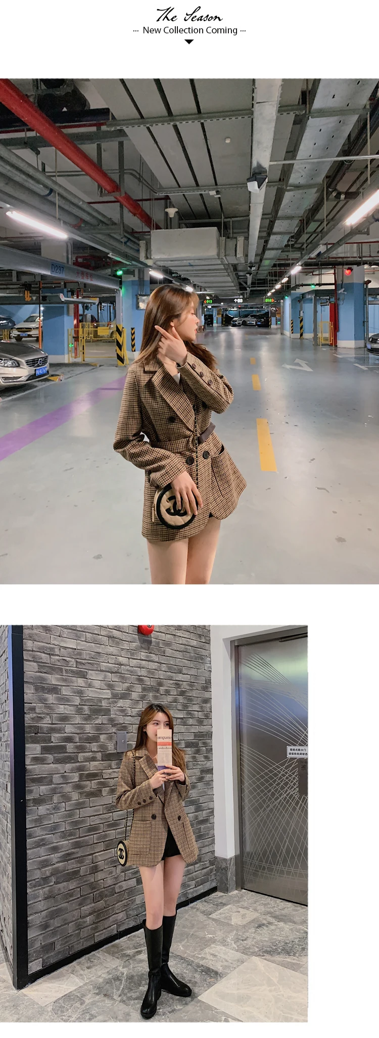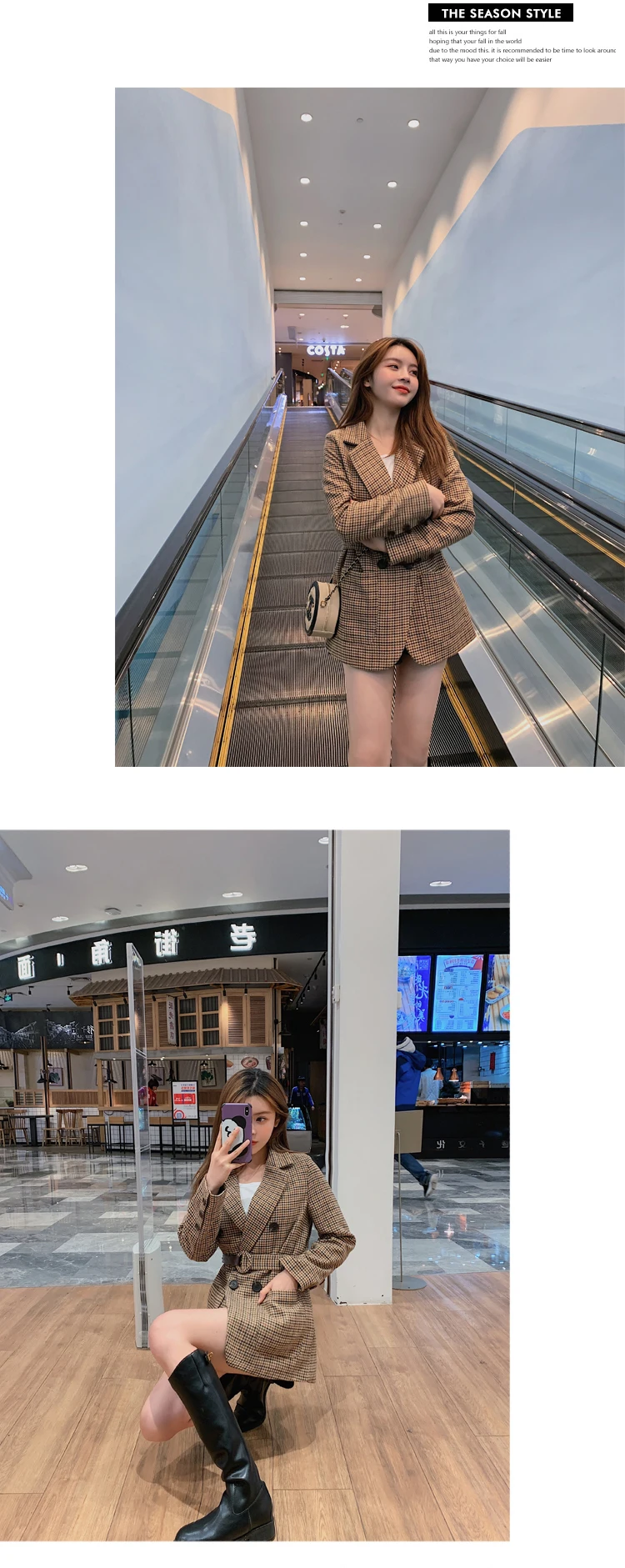 Женский винтажный клетчатый пиджак, шерстяное пальто в английском стиле с отложным воротником и поясом, весна-осень 2020