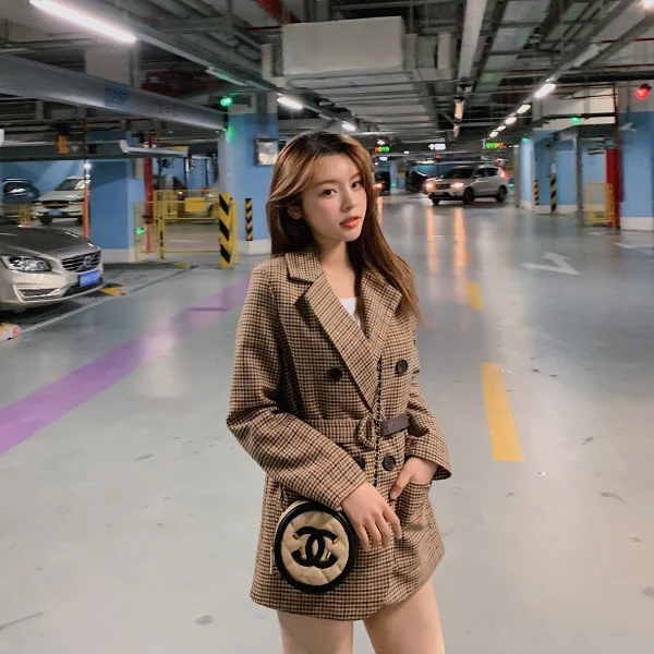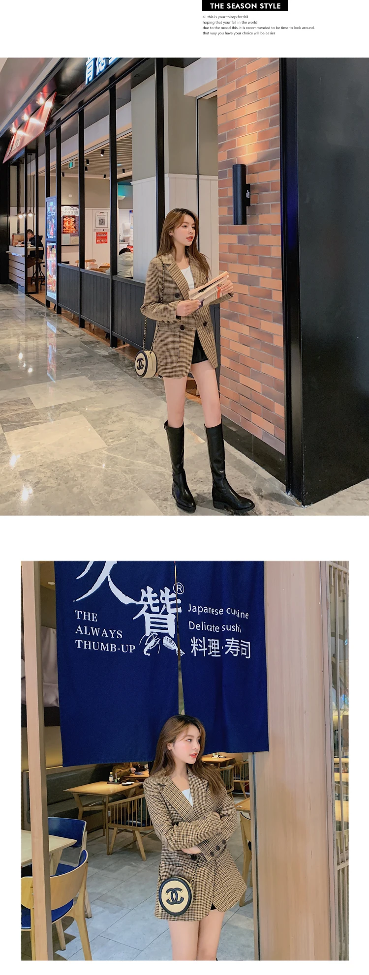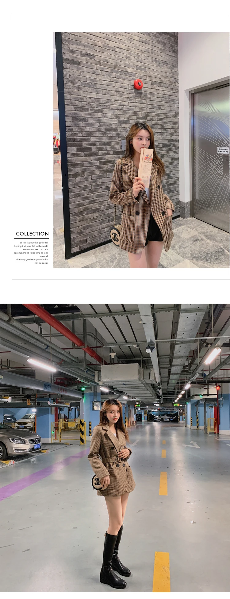 Женский винтажный клетчатый пиджак, шерстяное пальто в английском стиле с отложным воротником и поясом, весна-осень 2020