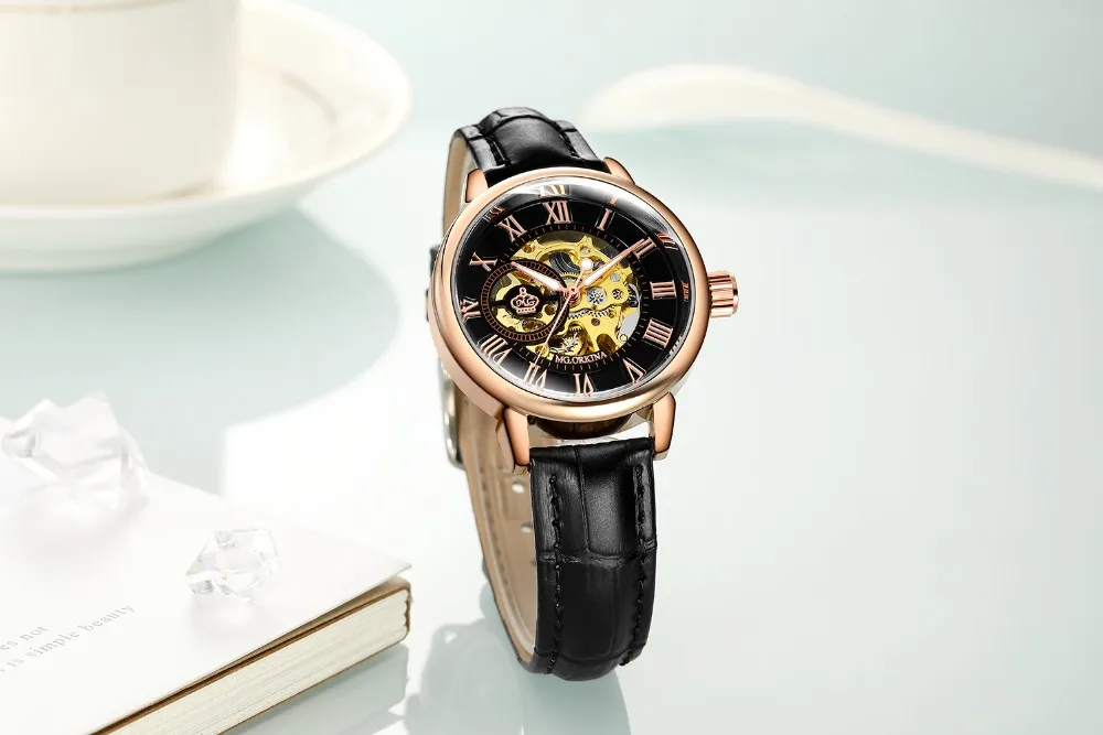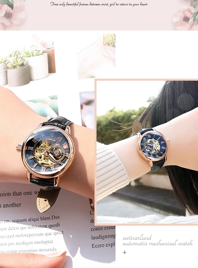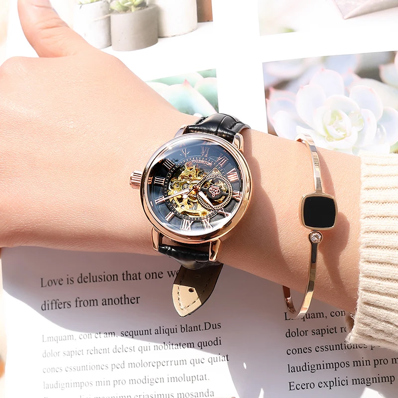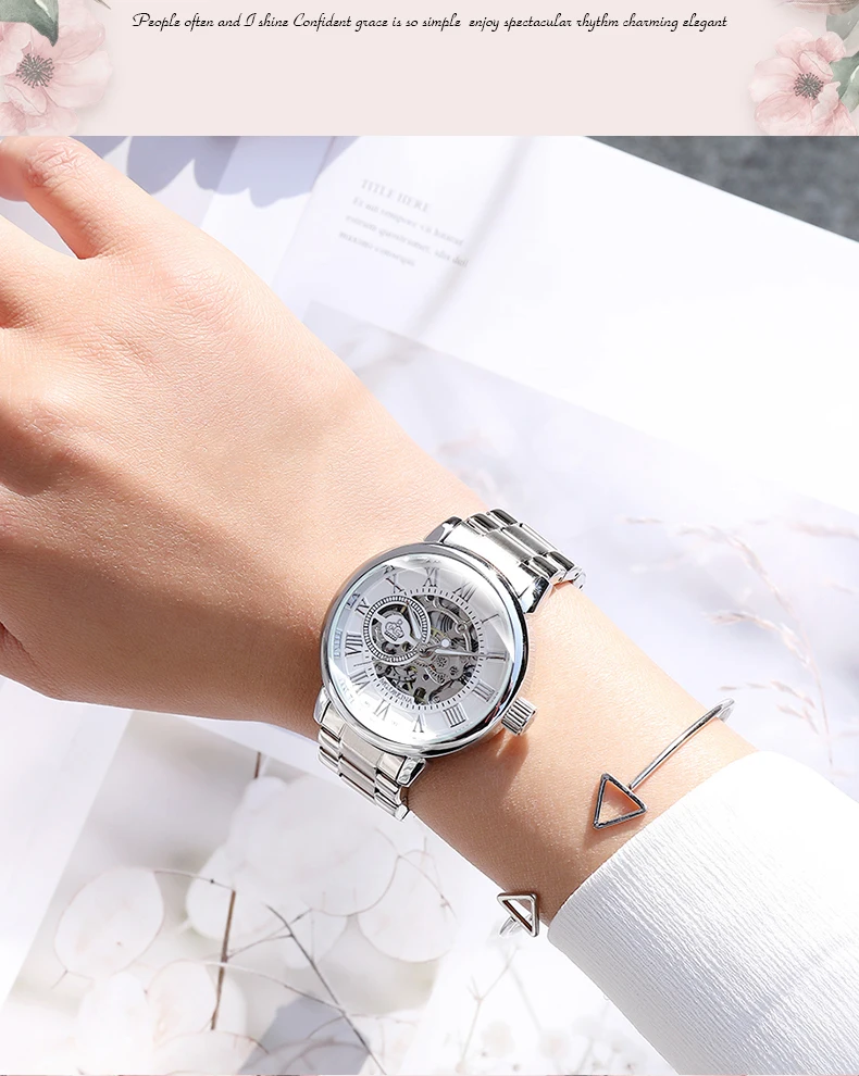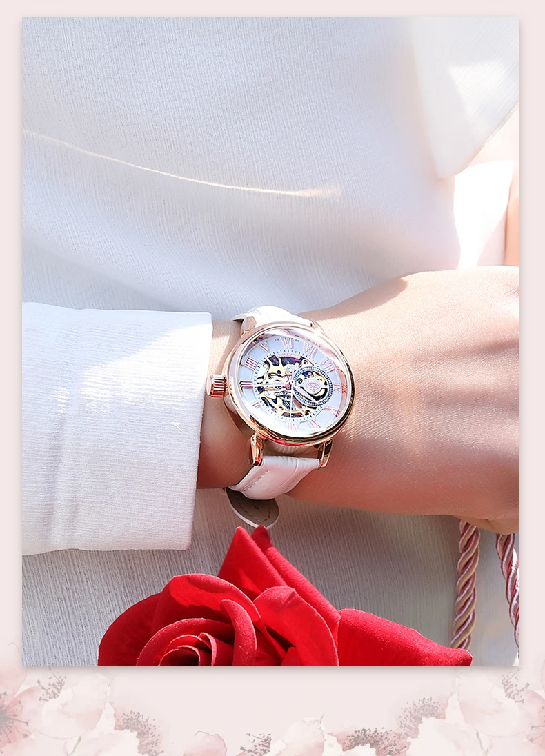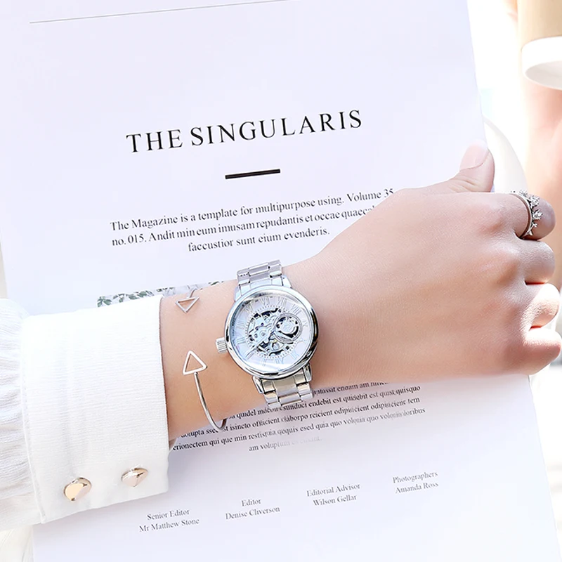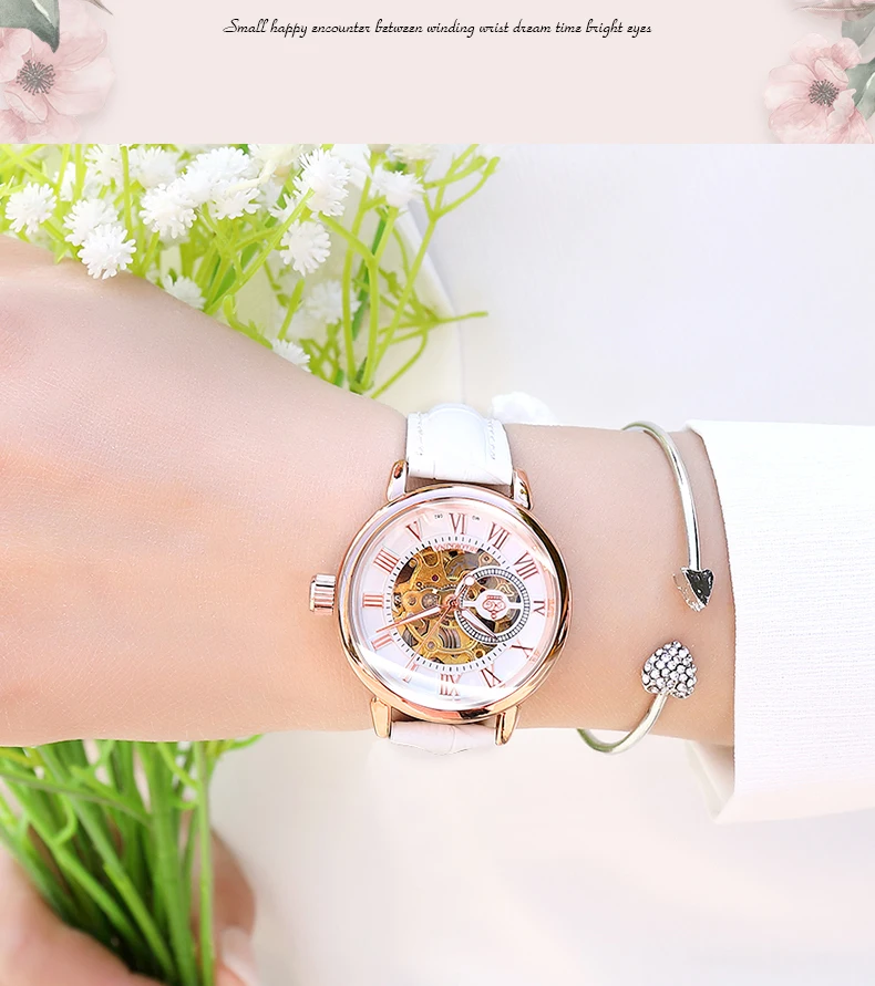 Часы наручные женские Автоматические механические, роскошные Брендовые Часы-скелетоны из нержавеющей стали, сетчатый ремешок, розовое золото, 2020