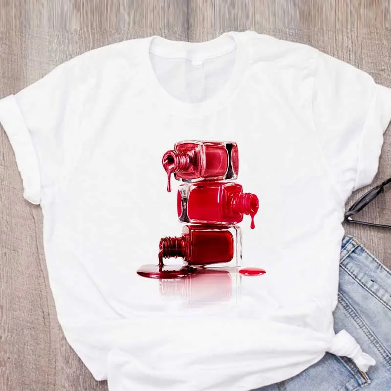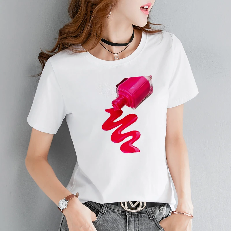 Женская футболка с 3D принтом в виде ногтей, цветная графическая модная женская футболка с милым принтом, белая футболка с 0-образным вырезом, женская одежда в стиле Харадзюку, футболка
