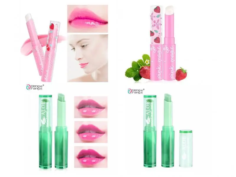 HengFang алоэ вера и клубника бальзам для губ Температура-Изменен Увлажняющий блеск для губ Водонепроницаемый длительную защиту губная помада TSLM1