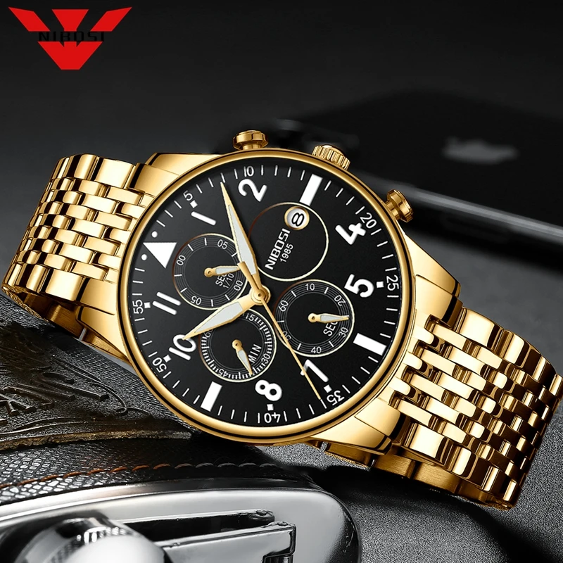 Часы наручные NIBOSI Мужские кварцевые с хронографом, брендовые Роскошные водонепроницаемые спортивные с светящимся дисплеем