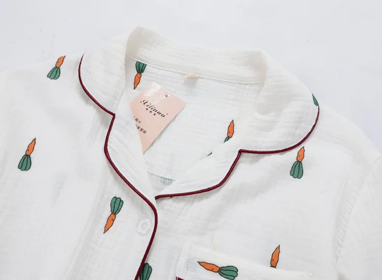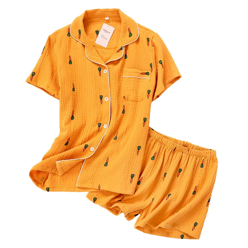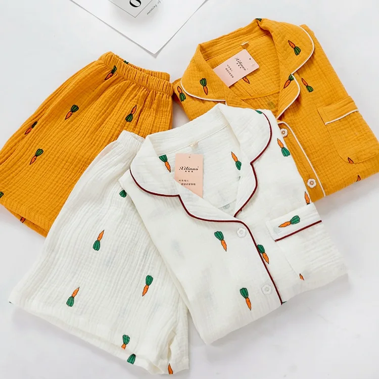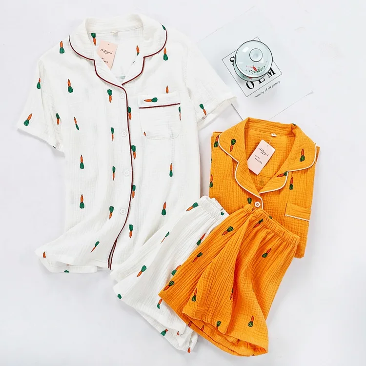 Хлопковый женский пижамный комплект, удобная летняя одежда для сна с отложным воротником, домашняя одежда с милым мультяшным принтом моркови, шорты