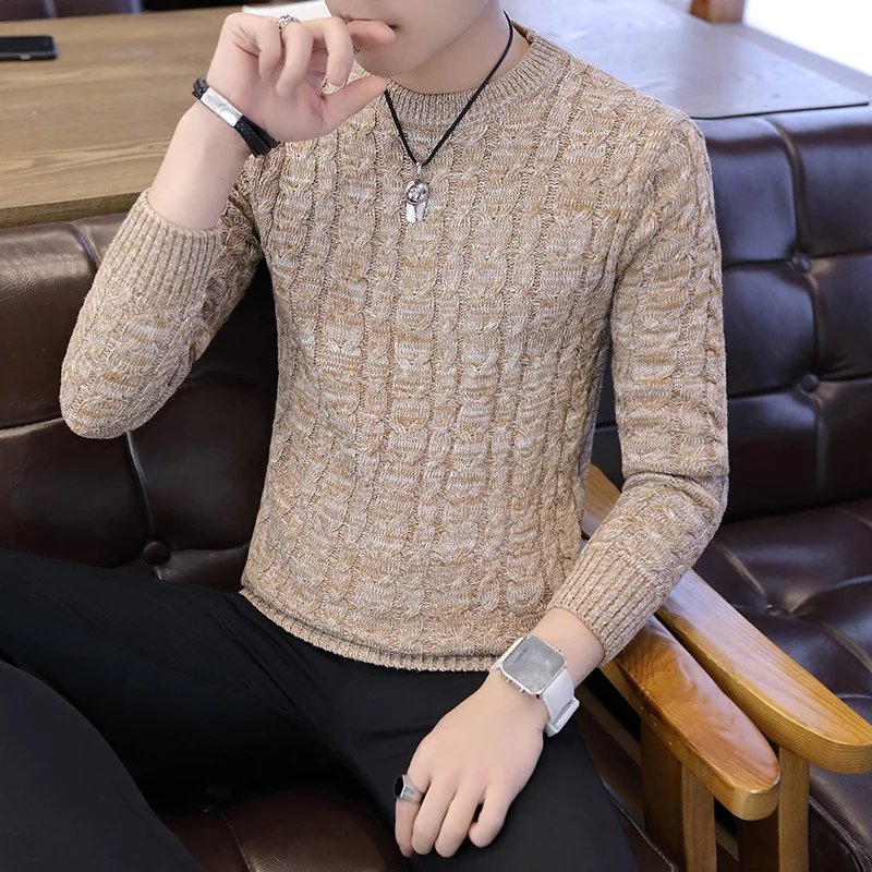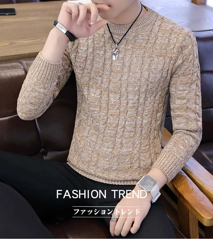Осенне-весенние вязаные свитера, повседневный мужской свитер, топ с круглым вырезом, блуза, мужские однотонные пуловеры, облегающий пуловер, одежда M-3XL, C277