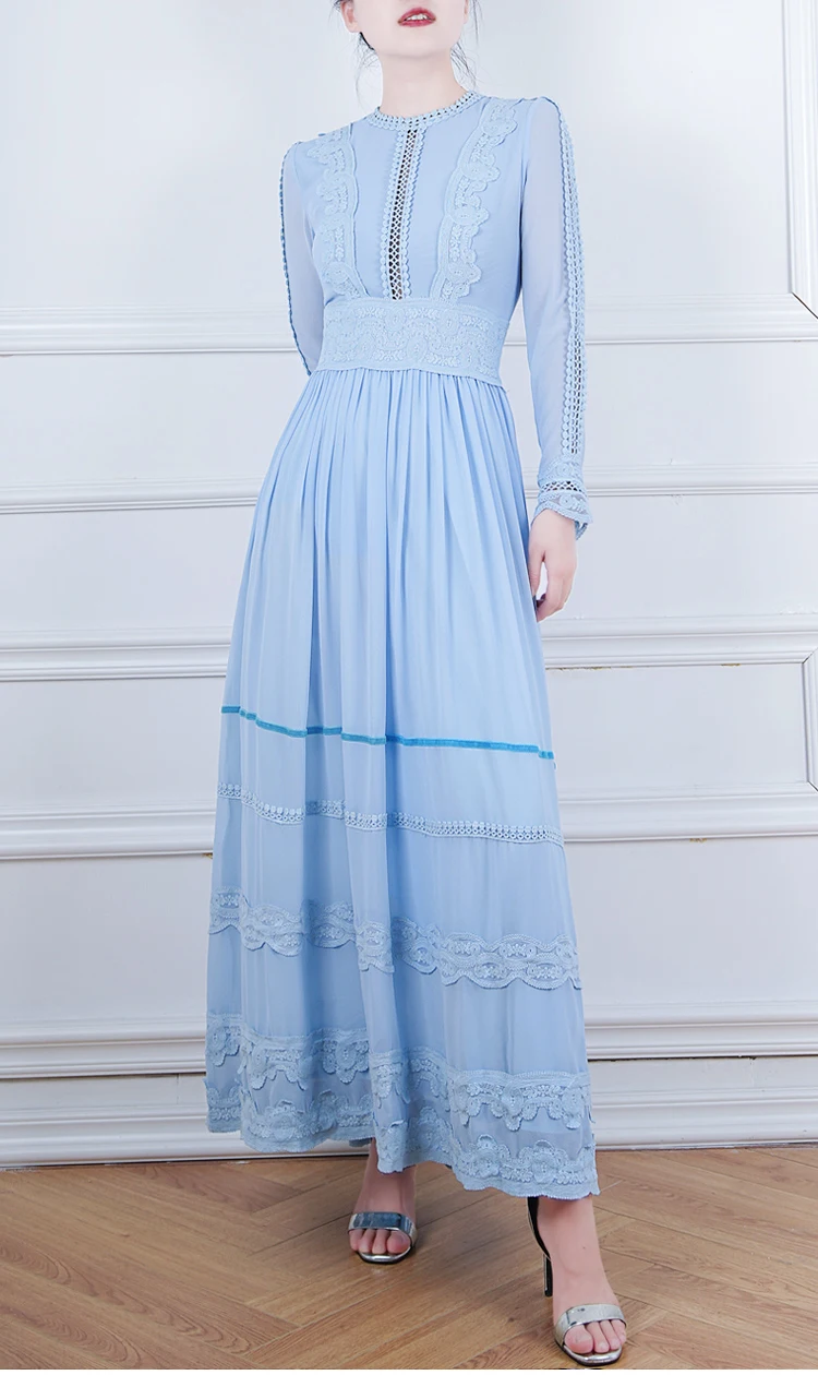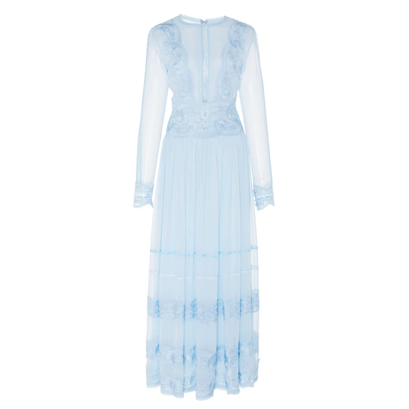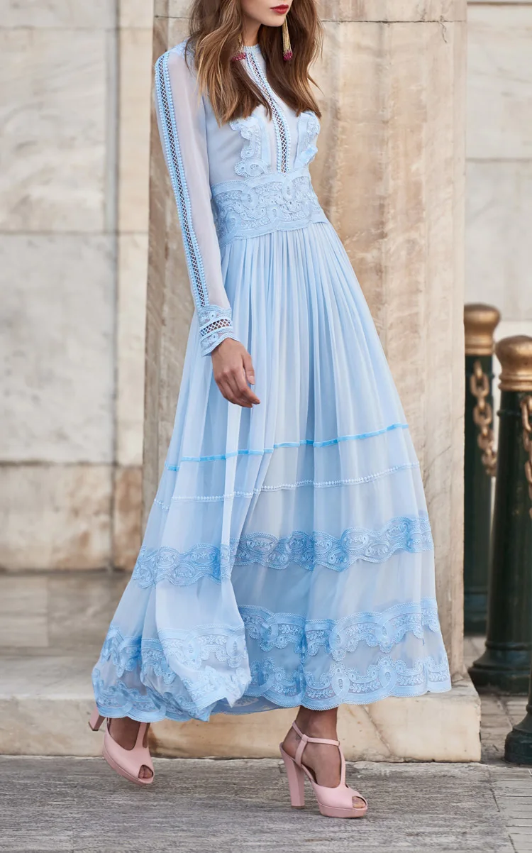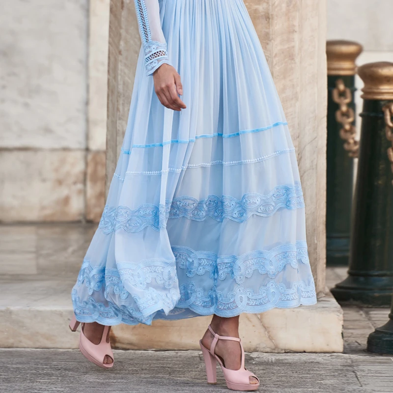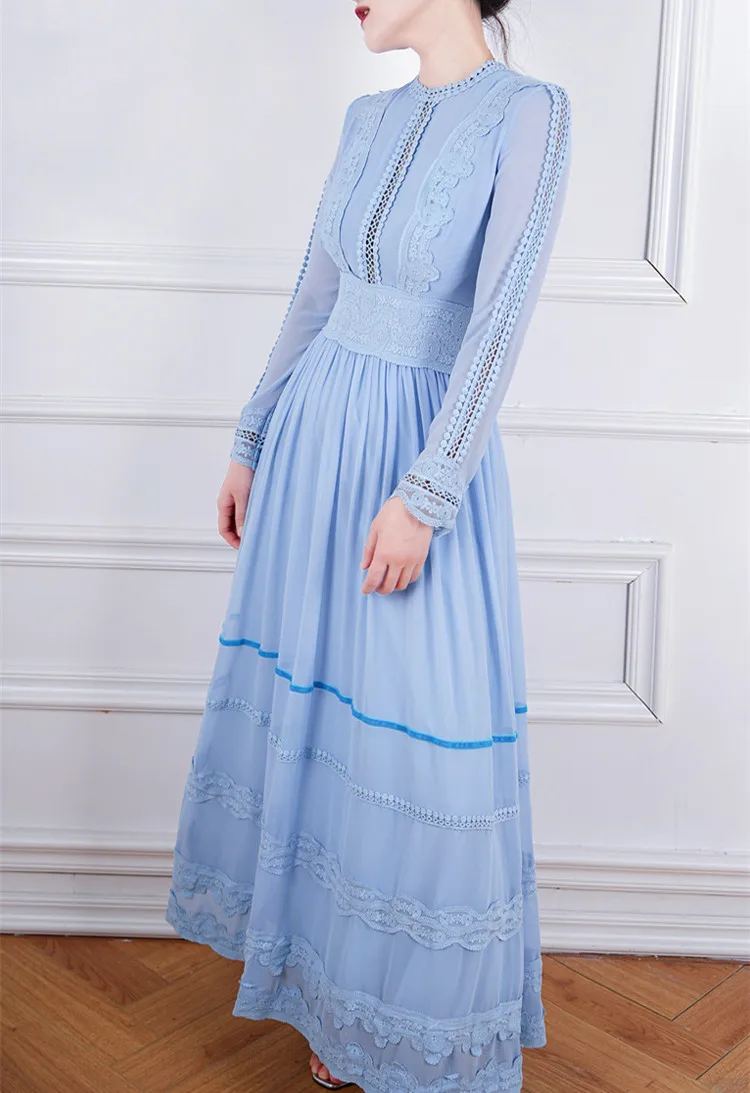 Женское длинное кружевное платье-макси, роскошное модельное плиссированное платье с длинным рукавом, элегантное праздничное офисвечерние платье в стиле High Street