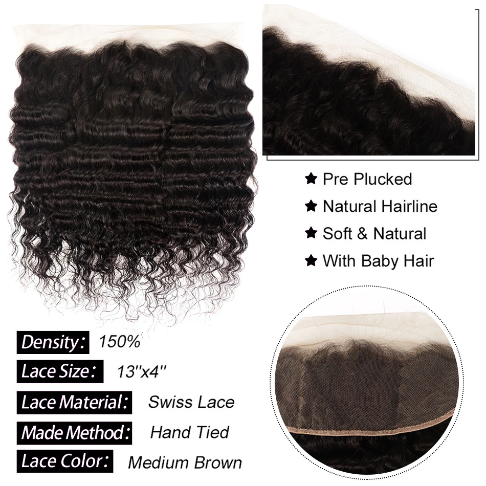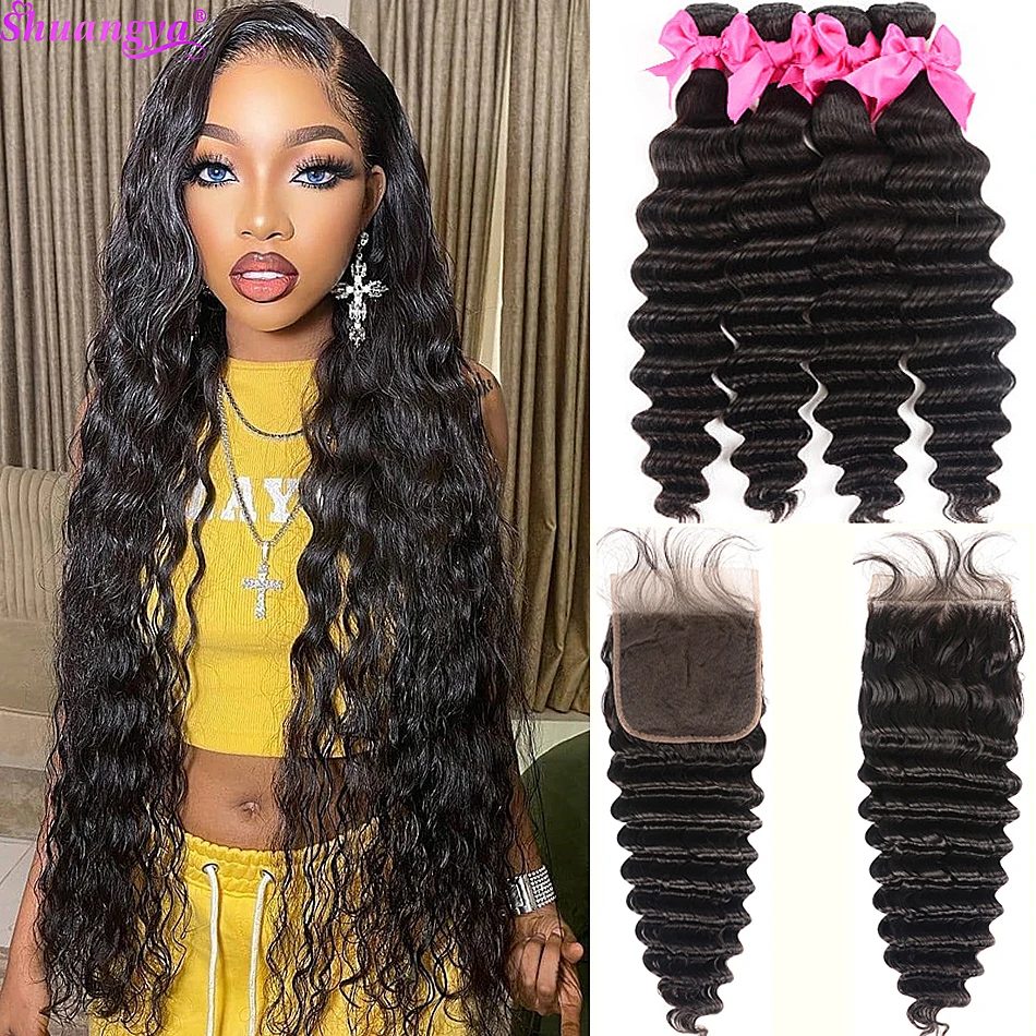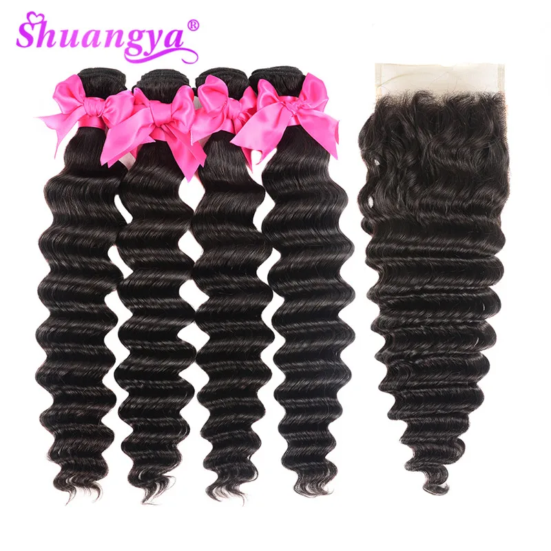 Прозрачная фронтальная пряди, перуанские свободные глубокие волнистые пряди с фронтальной пряди Shuangya Remy, пряди человеческих волос с закрытием