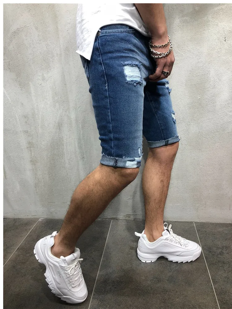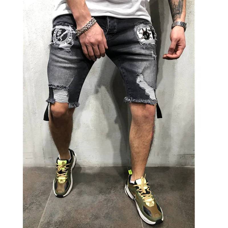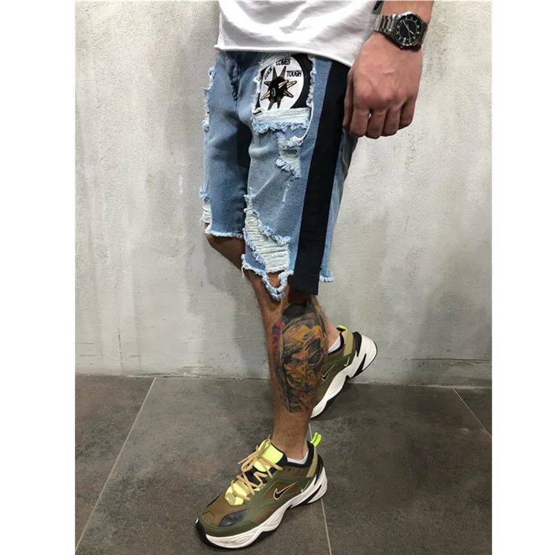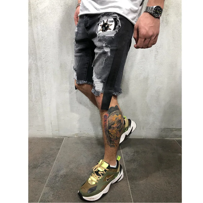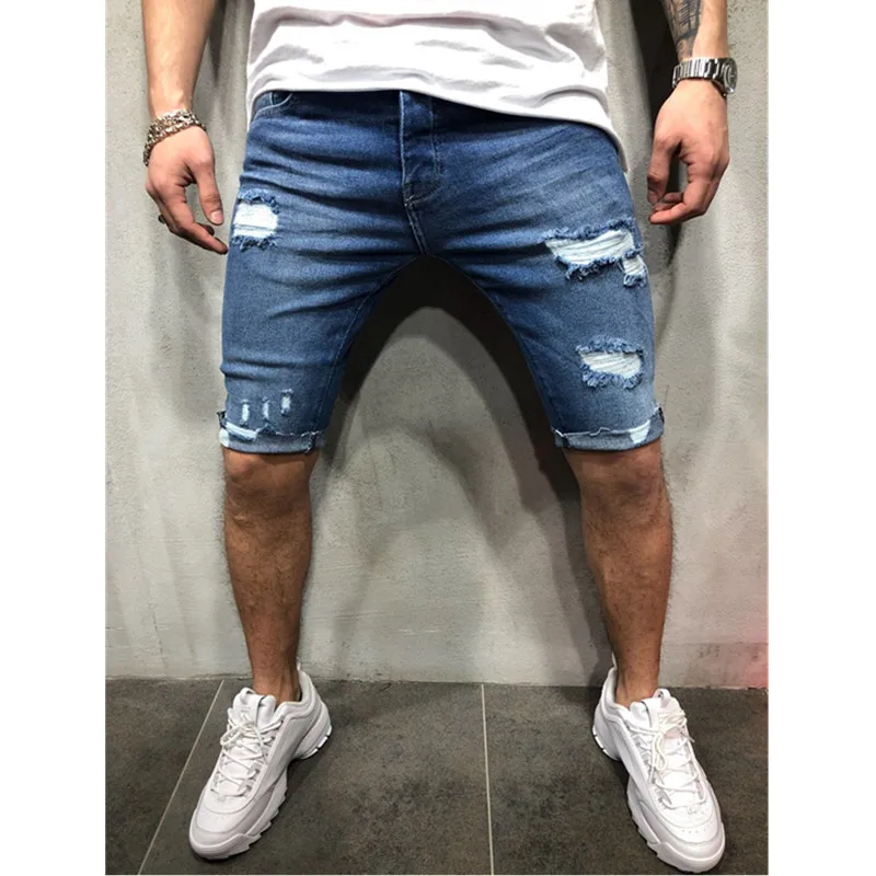 Мужские ковбойские шорты с дырками, эластичные рваные узкие джинсов...