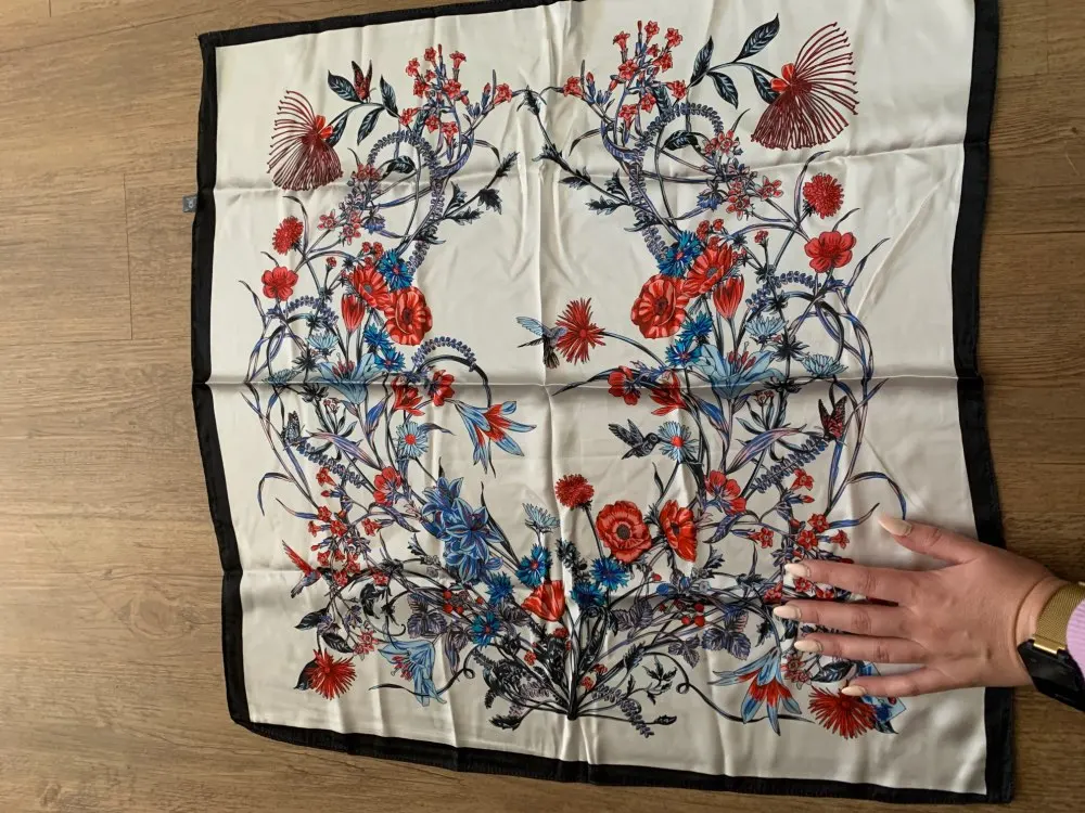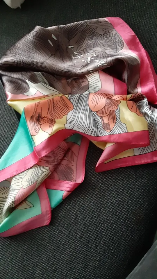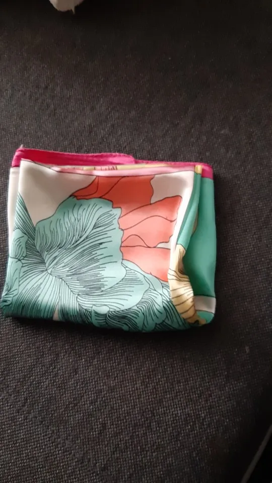 Милый маленький шелковый шарф очень мягкий... Цвета, идентичные ad.... Доволен своей покупкой, мне очень нравится
