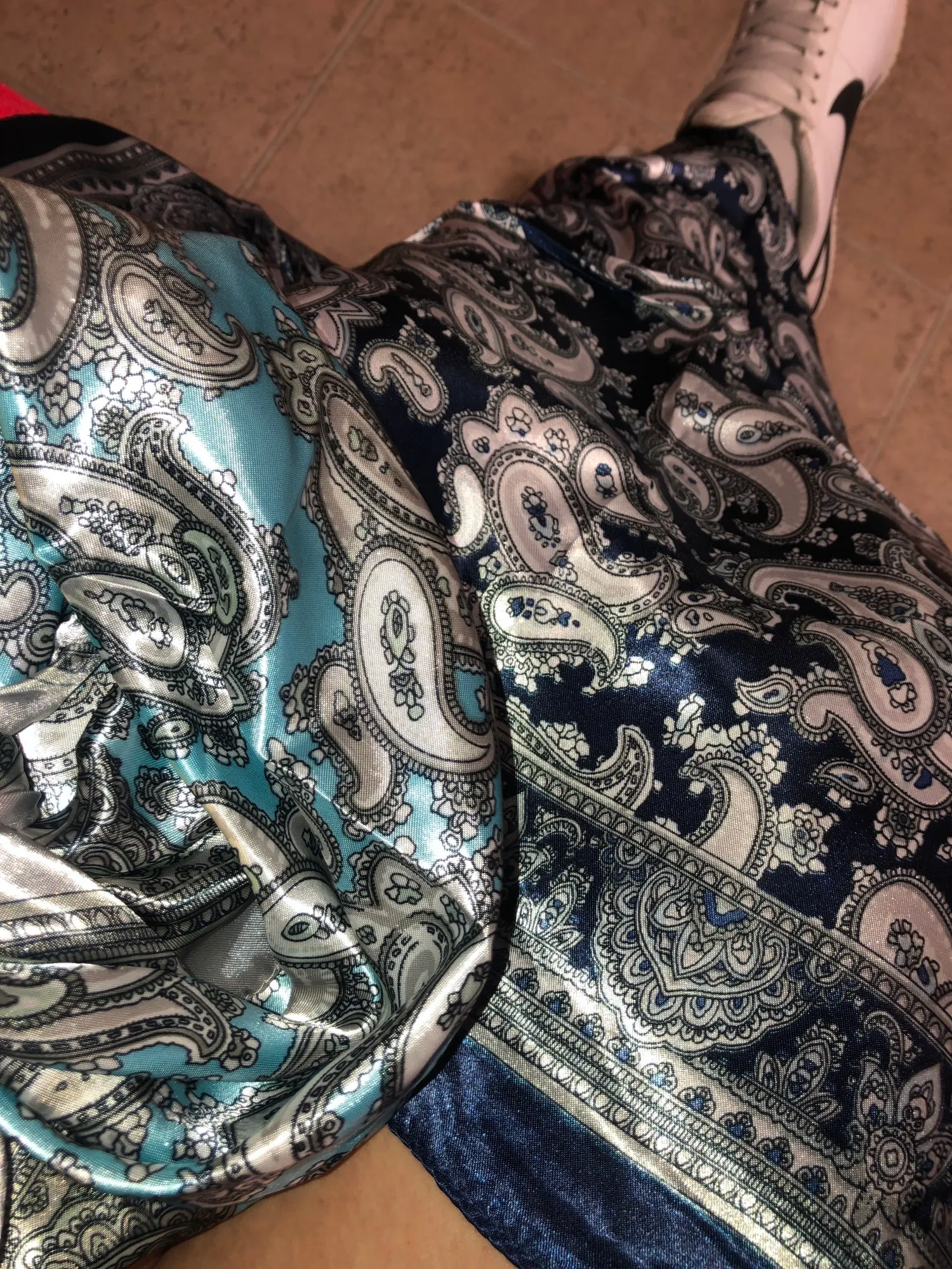 Быстрая доставка-шелковистая и легкая ткань-слишком скользкая, она никогда не будет держать волосы без добавления брусков, чтобы держать шарф.