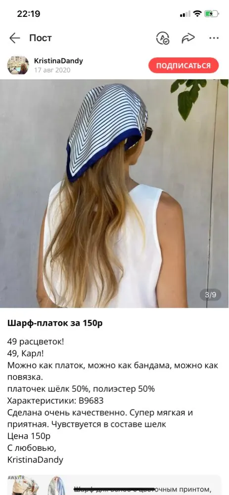 Есть хорошие шарфики с али, хоть и синтетика. Но этот настолько некачественный полиэстер, что аж как пластик не гибкий (ближе к картонке, нежели к ткани по фактуре). С другой стороны, цена соответствующая. Поэтому 5 звёзд
