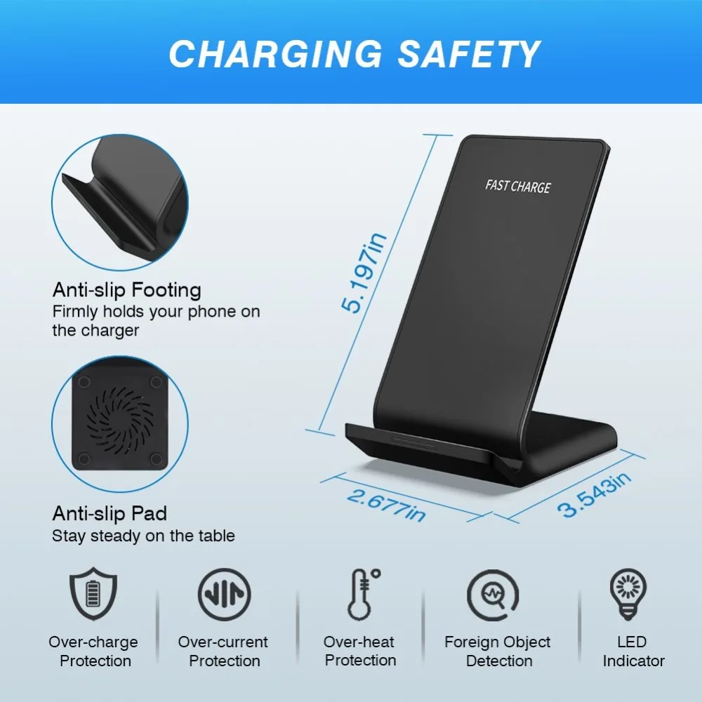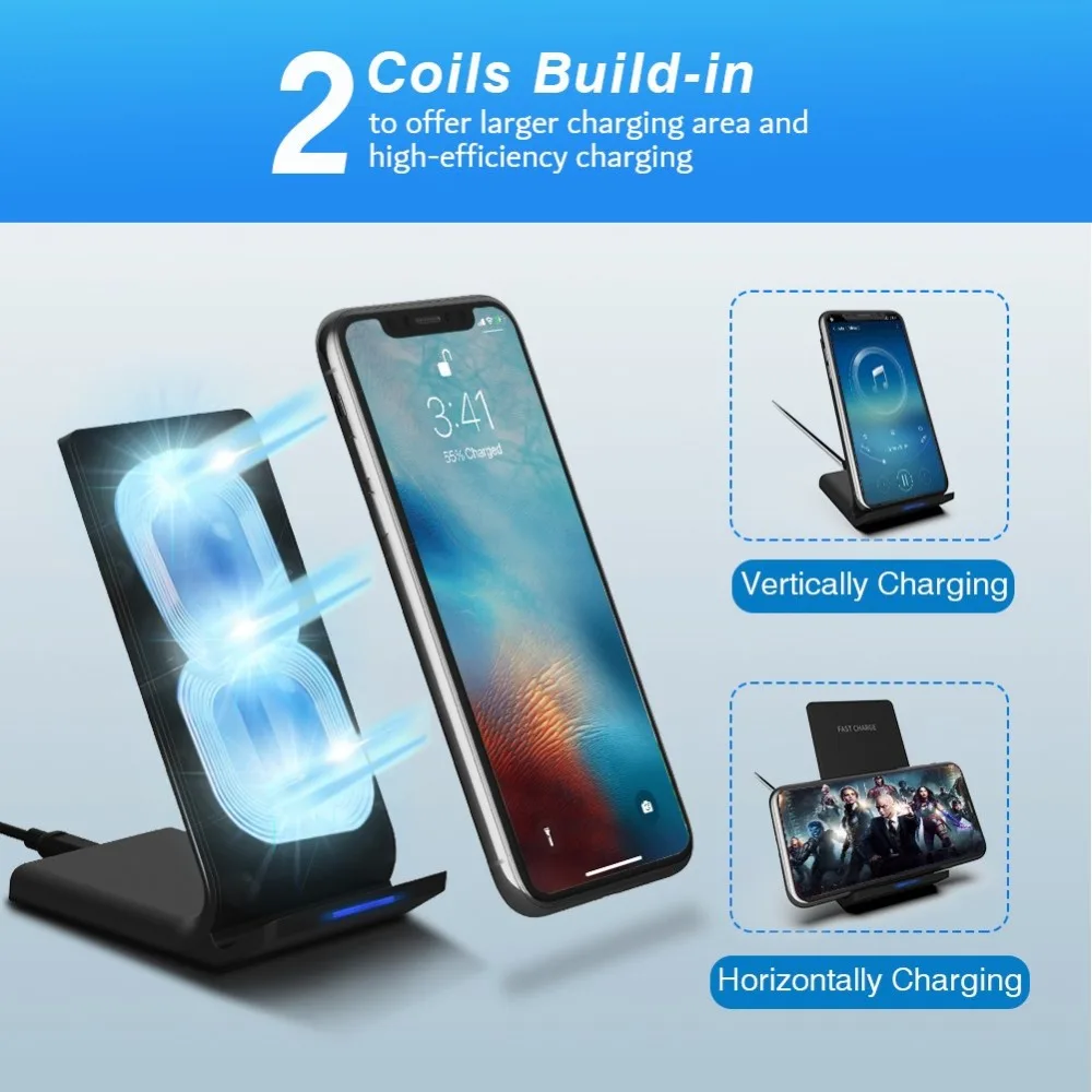 【 2 катушки Быстрая зарядка 】 Встроенный 2 катушки обеспечивают более широкую область зарядки, вы можете зарядить свой телефон вертикально или горизонтально, и нет разницы в производительности, просто положите его на подставку, и он заряжается! Каждый раз. Быстрое беспроводное зарядное устройство предложить более высокую скорость зарядки, который является 1,4 раз быстрее, чем другие стандартное беспроводное зарядное устройство.