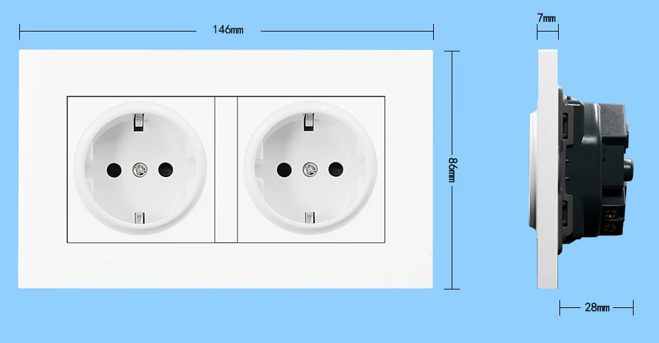 Евророзетка двойная Delviz, 16 А, 110-250 В переменного тока, 146 х86 мм