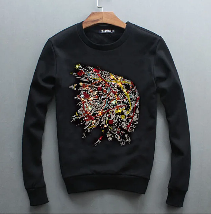 Мужская толстовка с капюшоном, черная Повседневная Толстовка с длинным рукавом и стразами, украшенная стразами, Осень-зима 2019