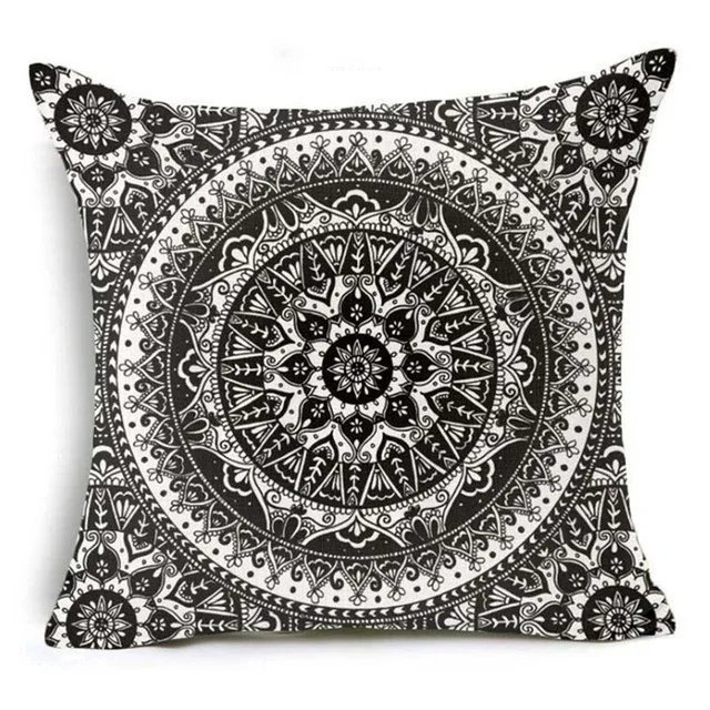 Декоративные подушки черная мандала цветок полиэстер с геометрическим принтом квадратная подушка для дивана автомобиля дома гостиной