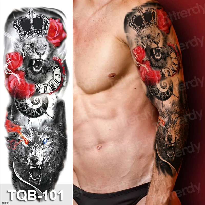 Временная татуировка с леопардовым принтом, Большая водонепроницаемая татуировка для мужчин и мальчиков, боди-арт, большая рука
