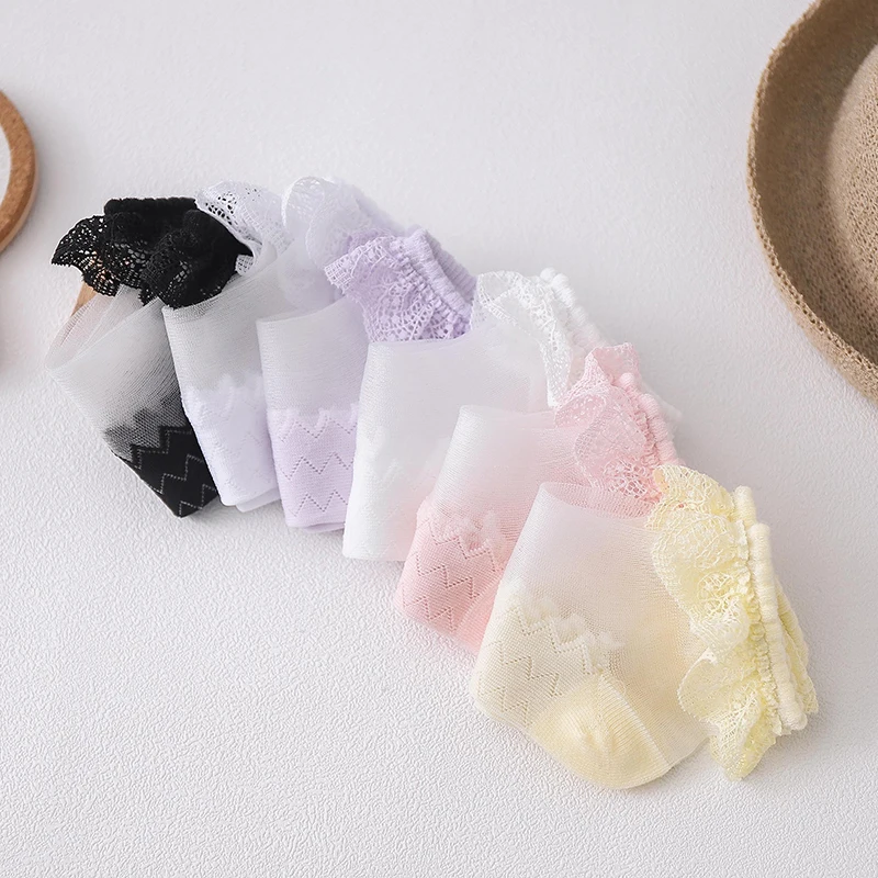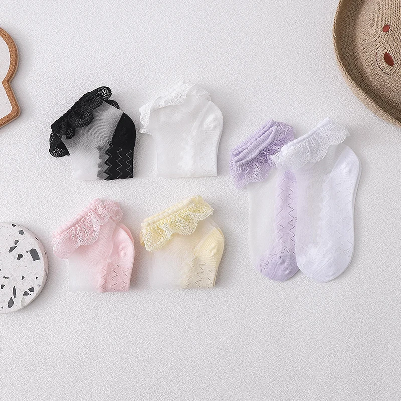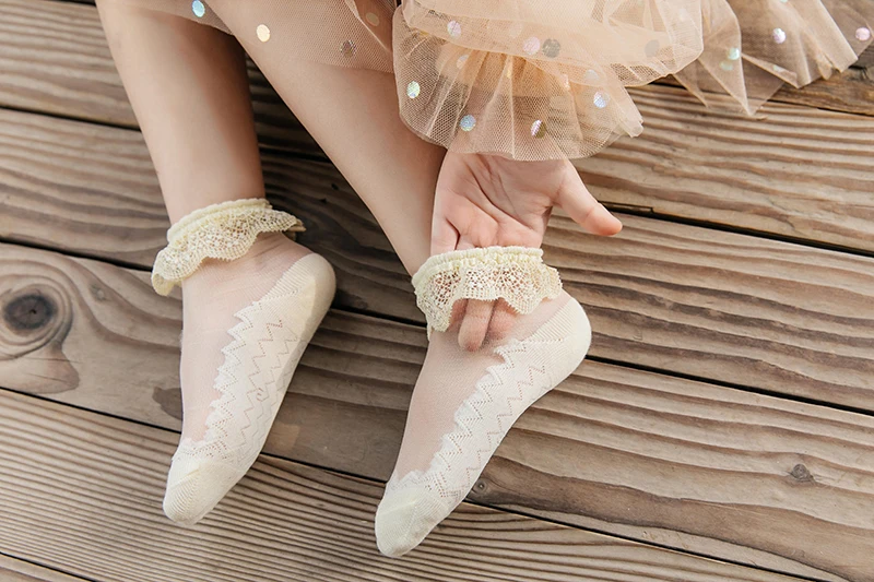 Новинка 2021 года, весенне-летние ультратонкие кружевные носки со стразами для маленьких девочек Однотонные невидимые носки детские носки принцессы для девочек