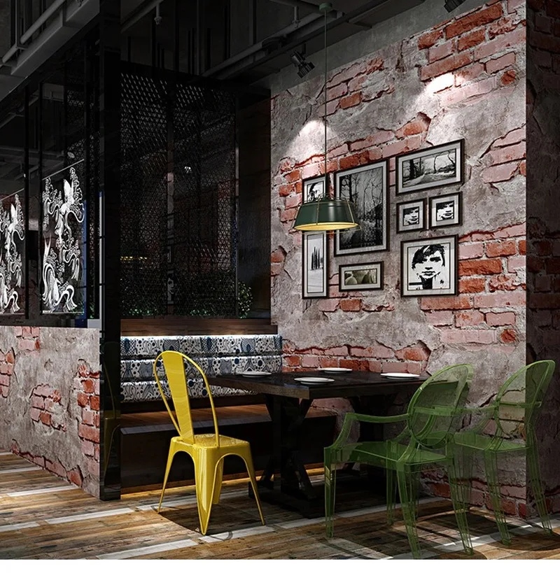 Ретро промышленная Лофт настенная бумага красная черная серая желтая моющаяся деревенская винтажная 3D искусственная кирпичная настенная бумага рулон винила ПВХ