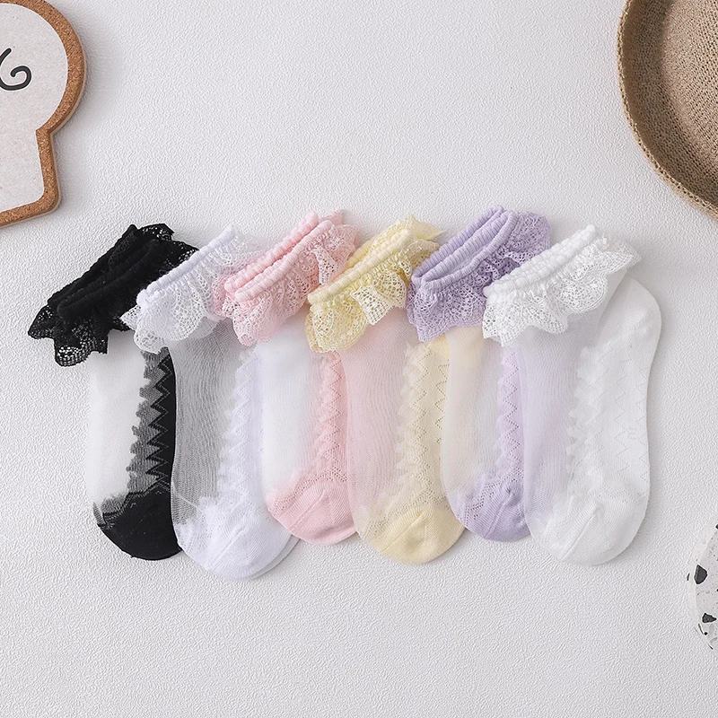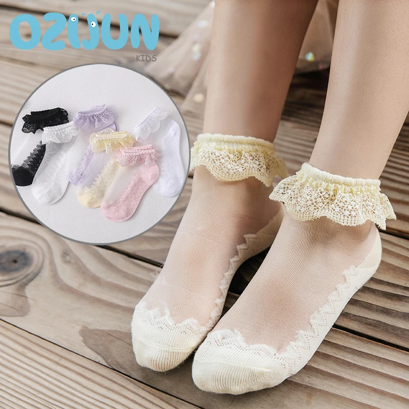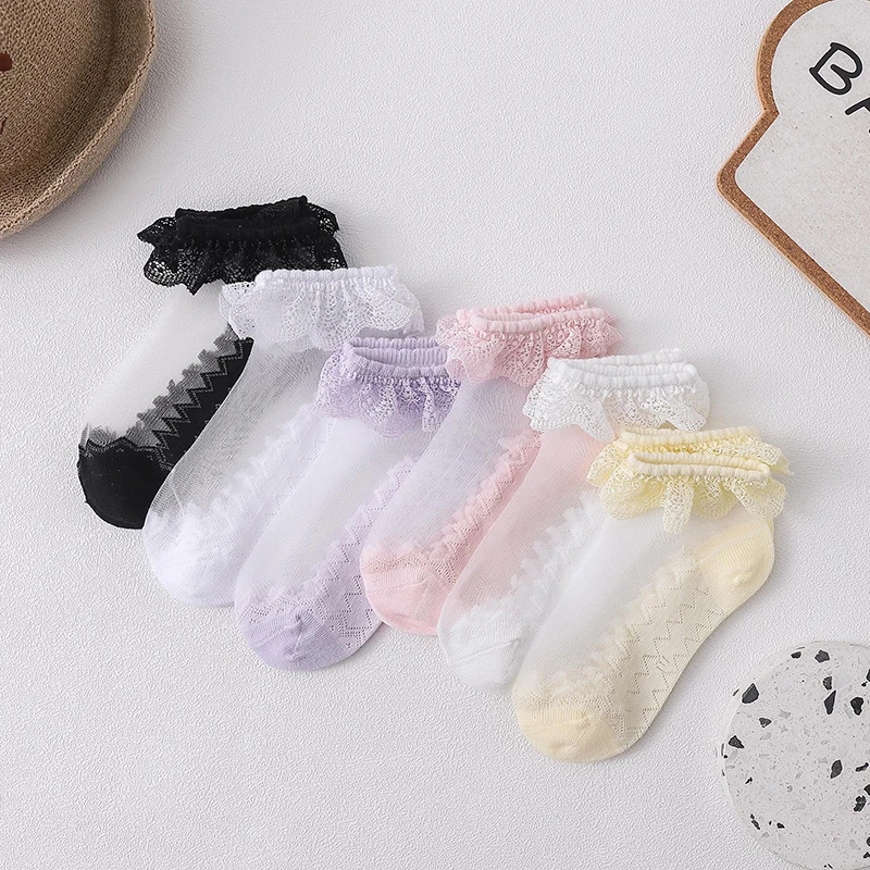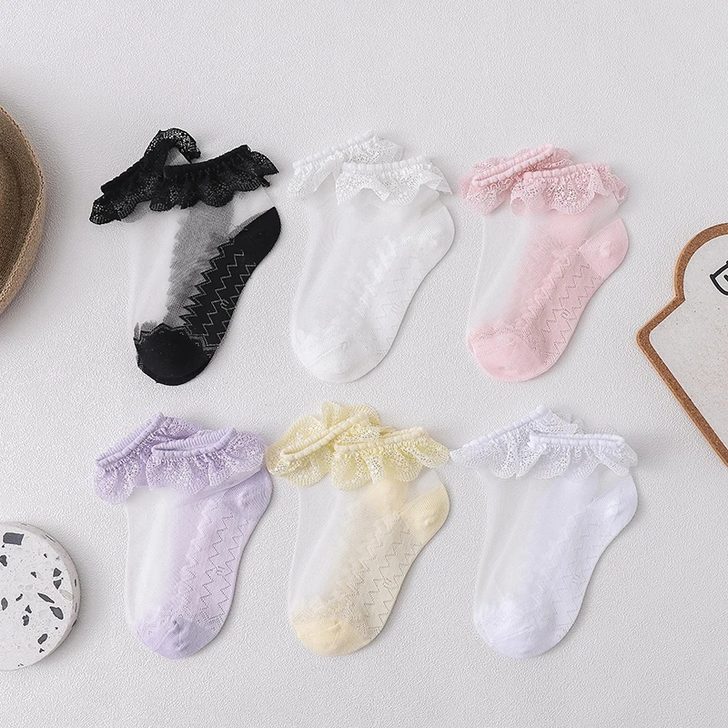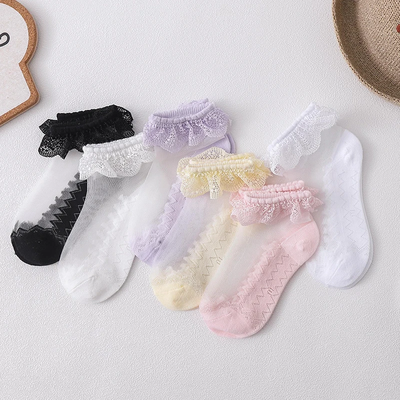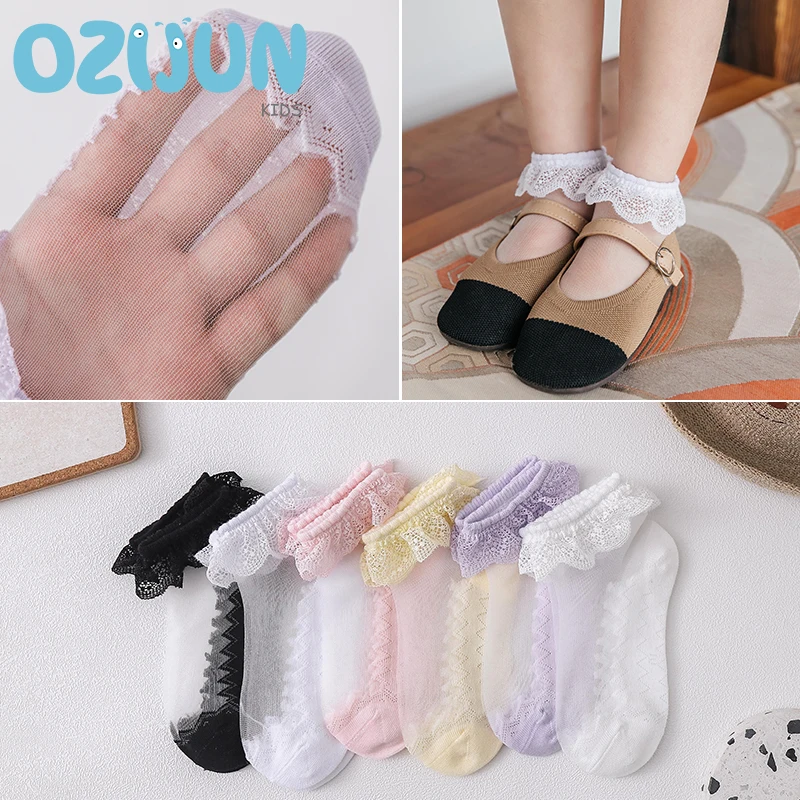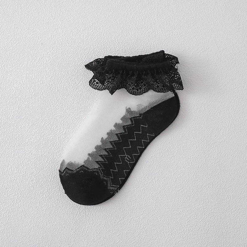 Новинка, весенне-летние кружевные ультратонкие прозрачные носки для маленьких девочек с кристаллами, однотонные невидимые Симпатичные детские носки с принтом для девочек
