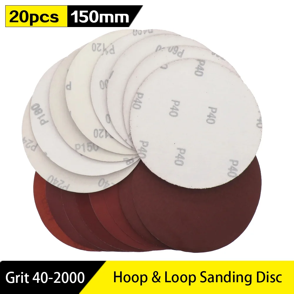 20 шт., 6 дюймов, 150 мм, круглые красные наждачные диски, листы песка, Зернистость 40-2000, самоклеящиеся шлифовальные диски с петлей на липучке для шлифовальной бумаги