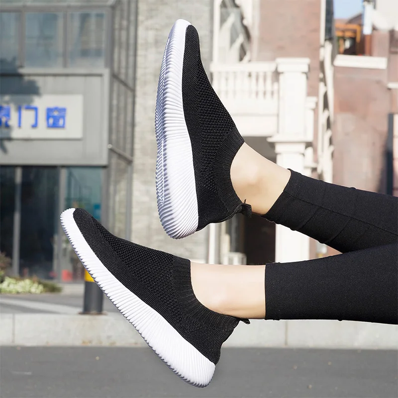 Женские Дышащие сетчатые кроссовки размера плюс 43, сезон весна-лето 2020, мягкие вязаные кроссовки на плоской платформе без шнуровки для прогулок, #3