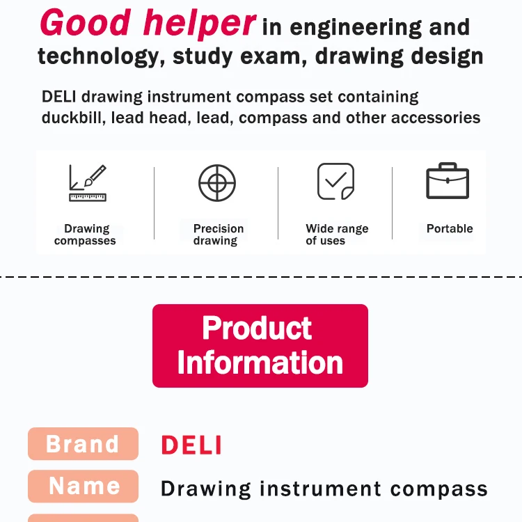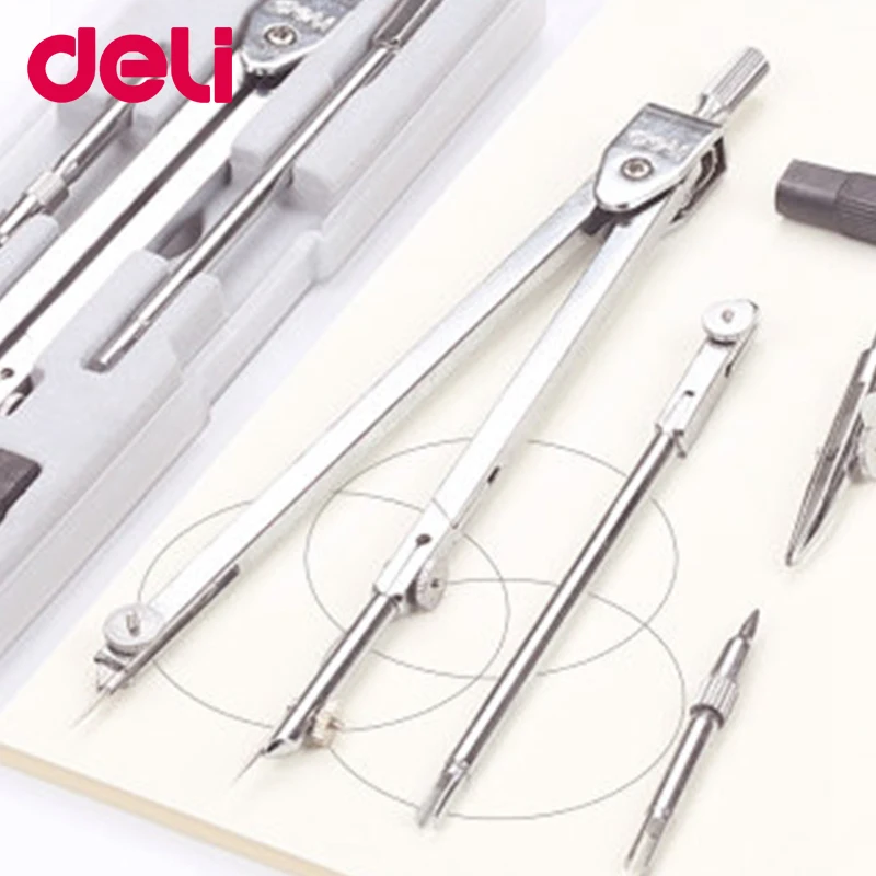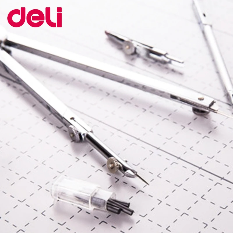 Многофункциональный компас Deli из нержавеющей стали для рисования, инструмент для создания геометрических кругов со свинцовым сердечником, долговечные принадлежности 86008601