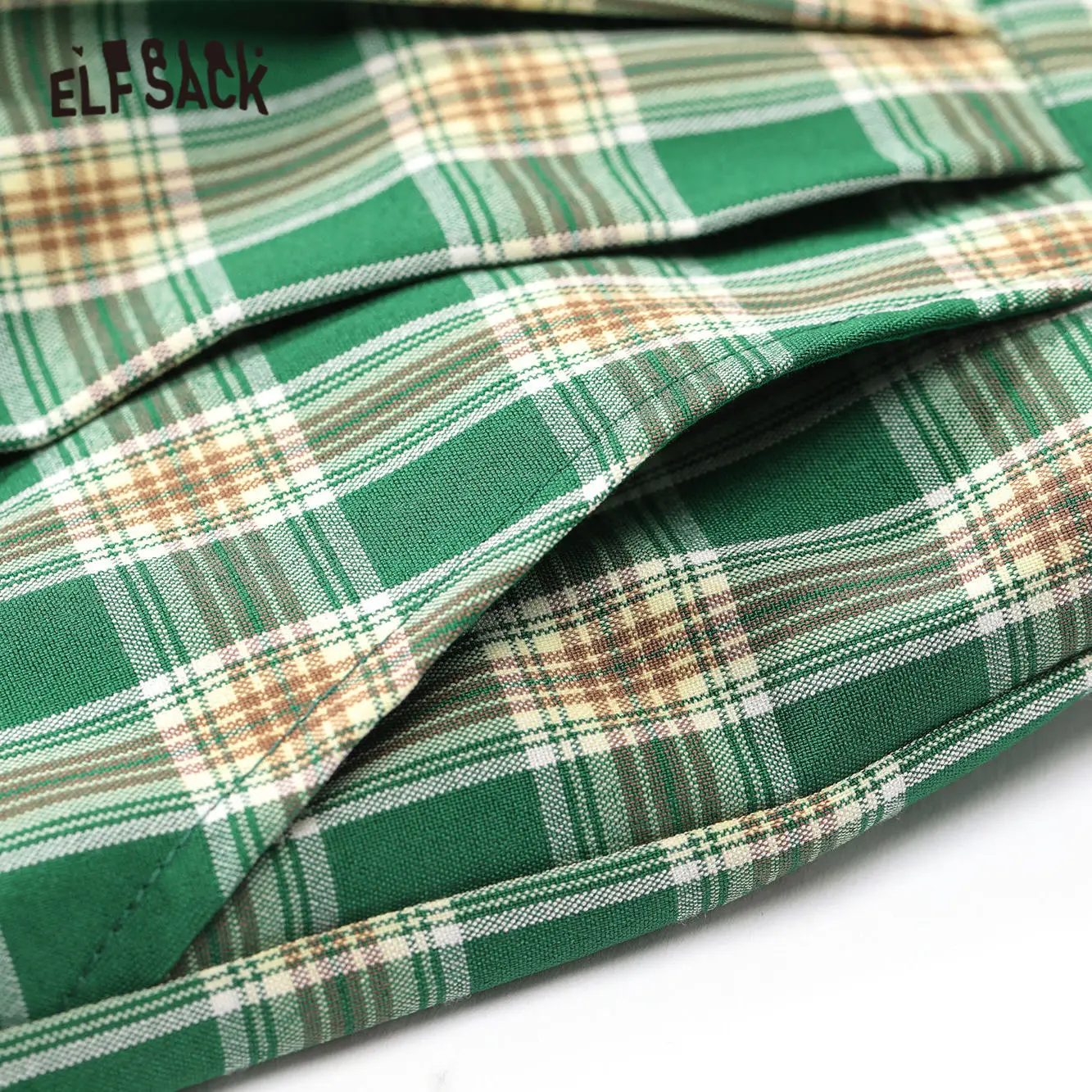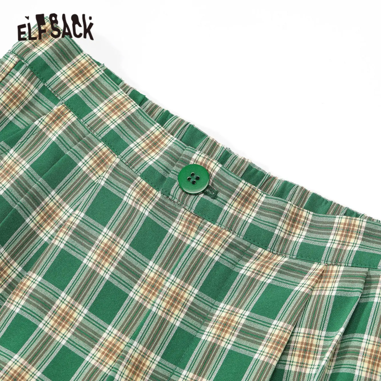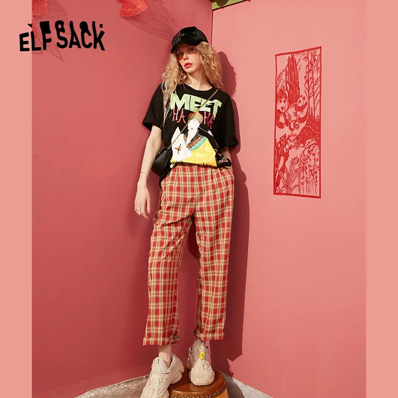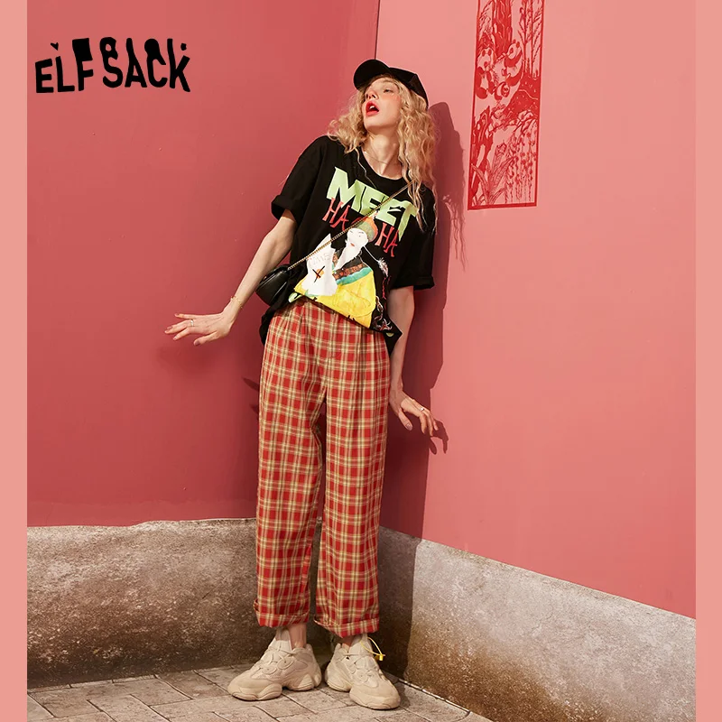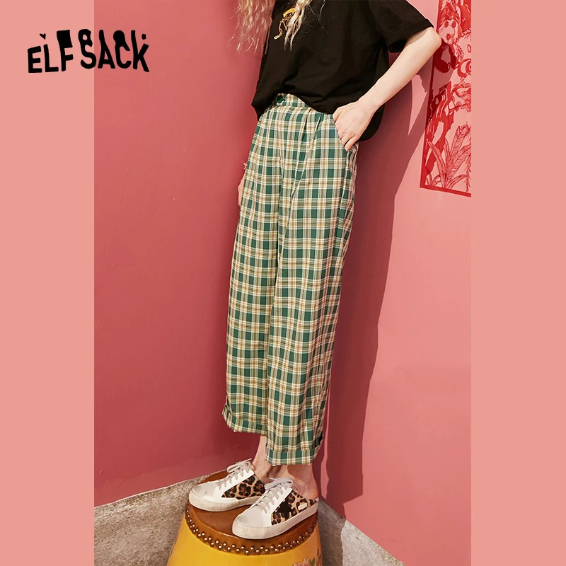 ELFSACK зеленые клетчатые Свободные повседневные женские брюки с высокой талией 2020 весенние красные прямые брюки в Корейском стиле