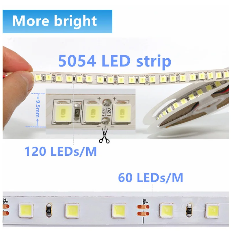 Гибкая светодиодная ленсветильник 5054 SMD 5050, 12345 м, водонепроницаемая светодиодная лента 12 В постоянного тока для кухни, белый, теплый белый, ярче, чем