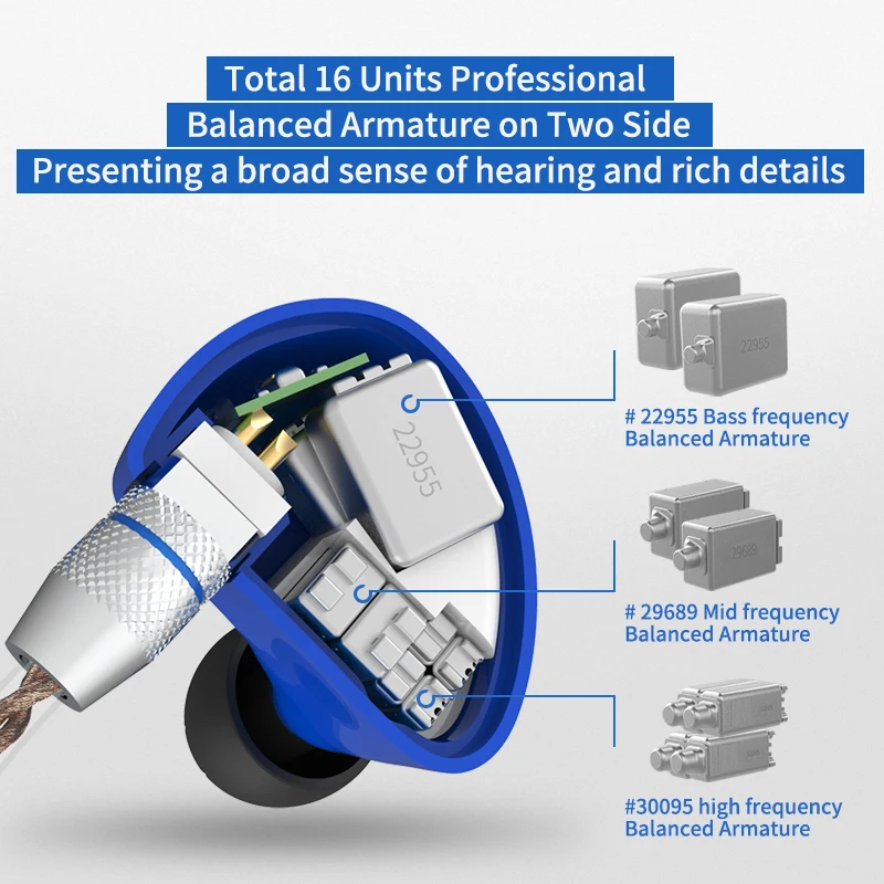 16.Блок драйвера:8 сбалансированных арматурных (8BA) блок драйвера с одной стороны