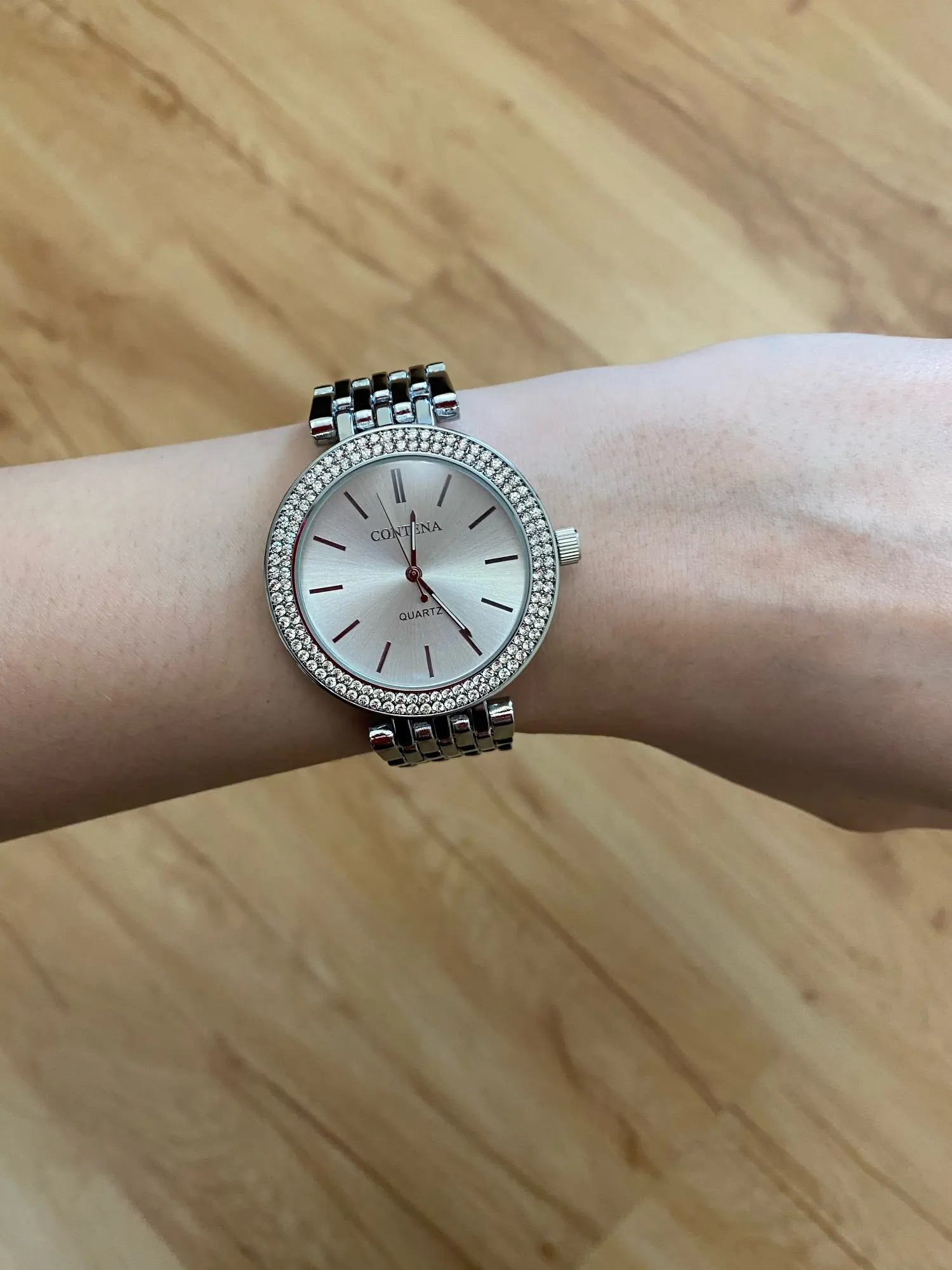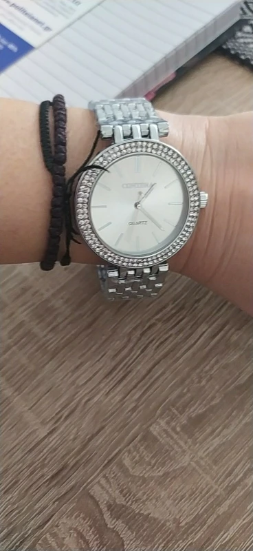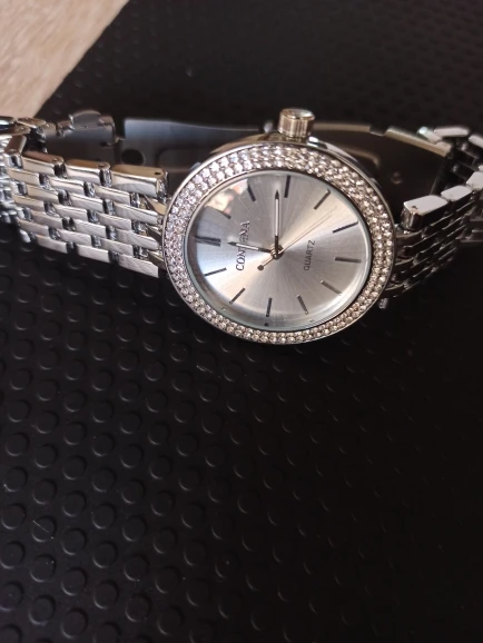 Часы очень красивые. Стразы все на месте, замок на браслете работает. Браслет великоват. Жаль что нет ключика для уменьшения браслета. Доставка за 12 дней, быстро).