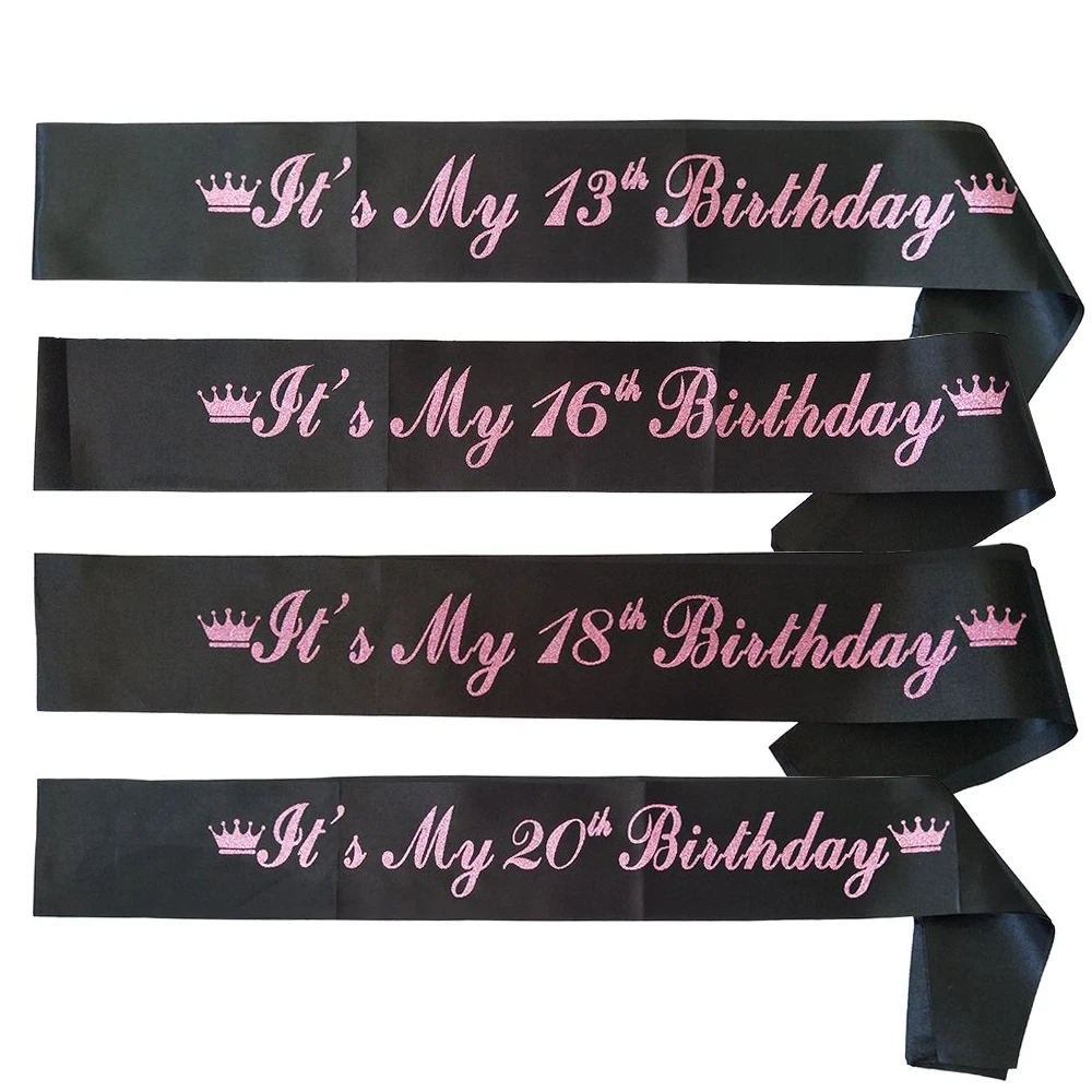 Атласные ленты для девочек Its My 13th 16th 18th 20st, лента для дня рождения, черные, розовые, 13, 16, 18, 20, украшения для дня рождения