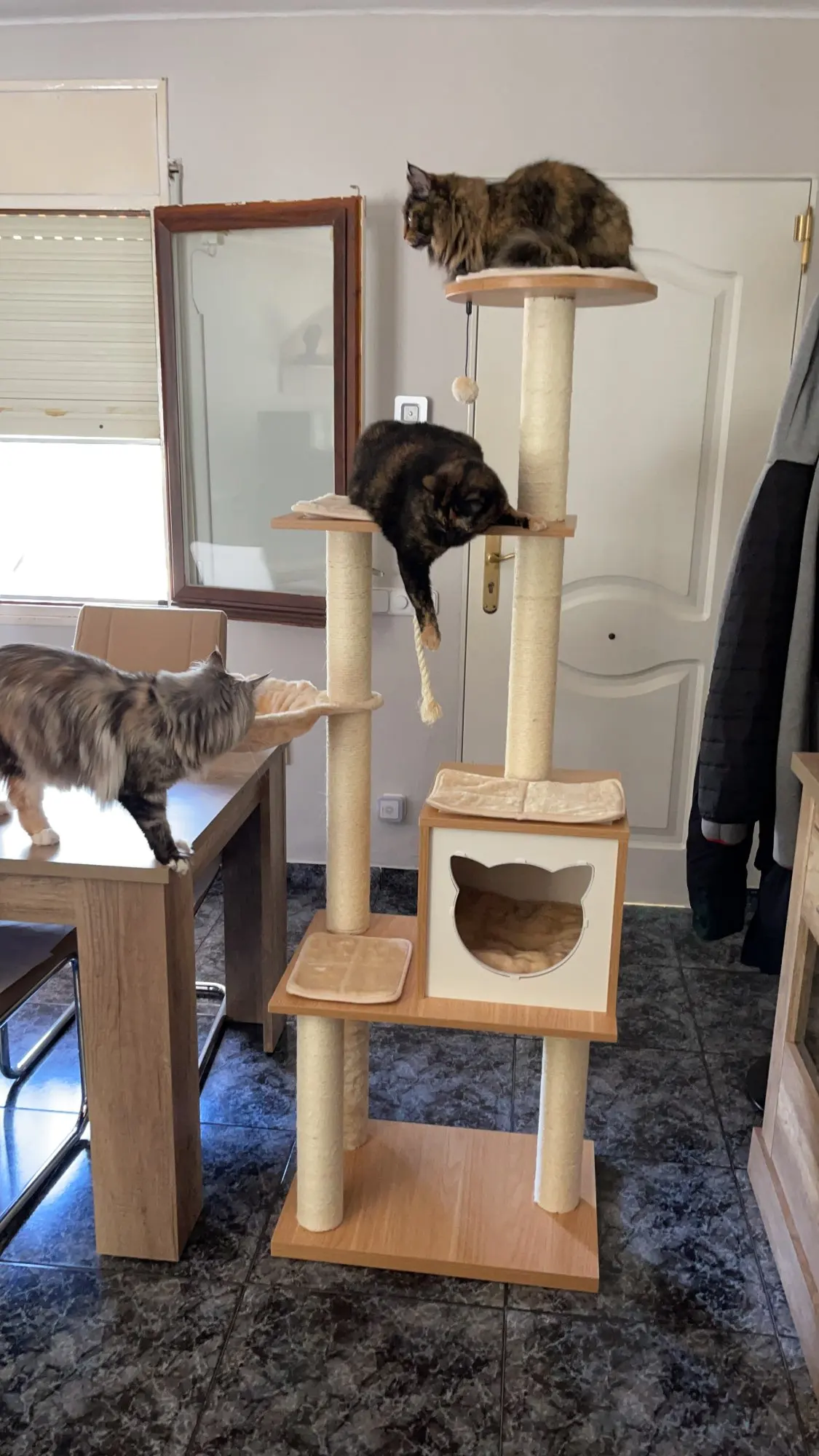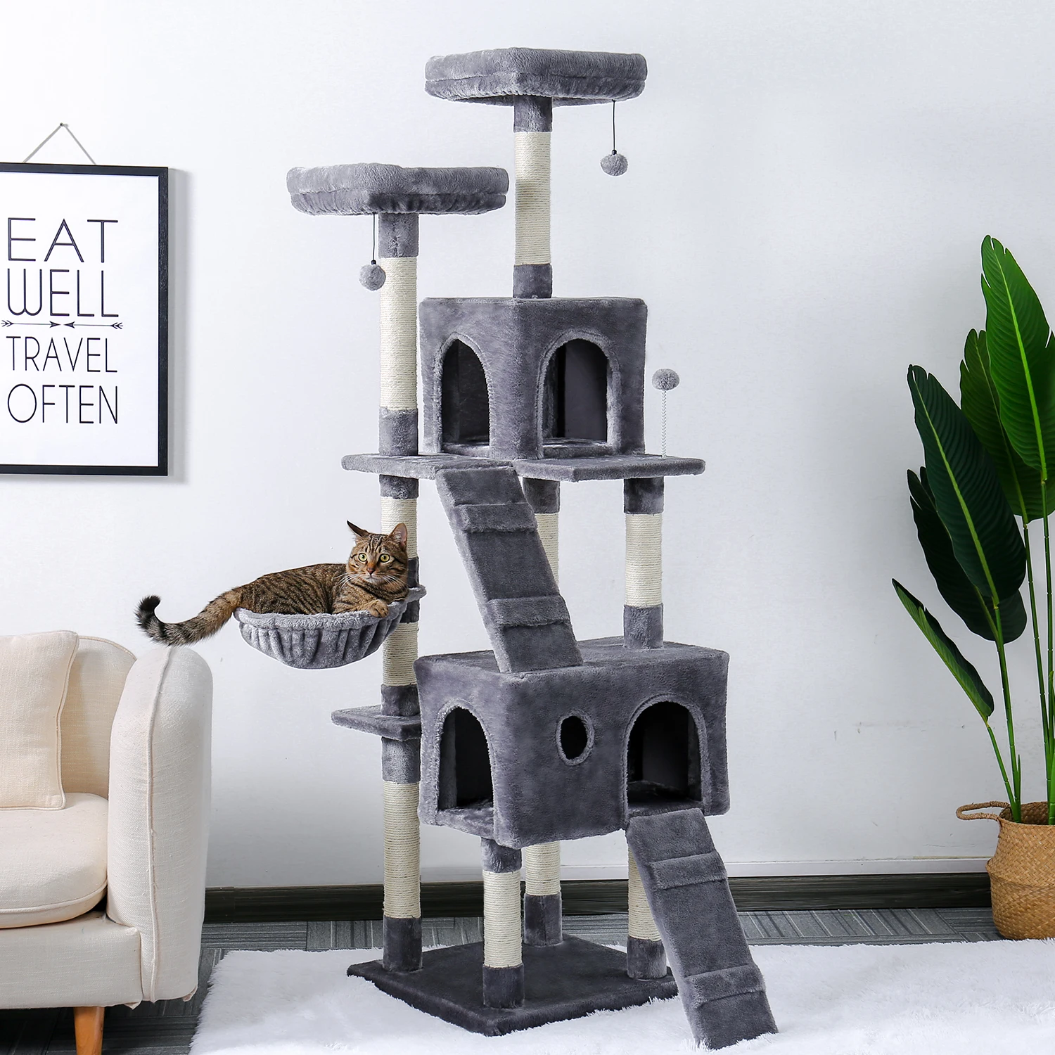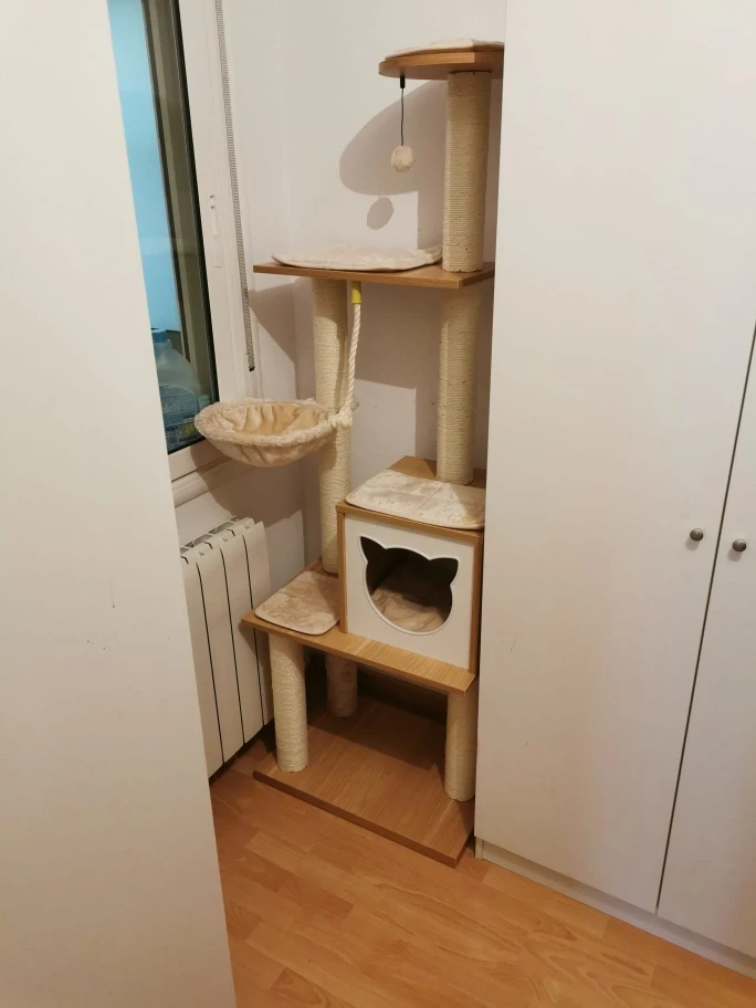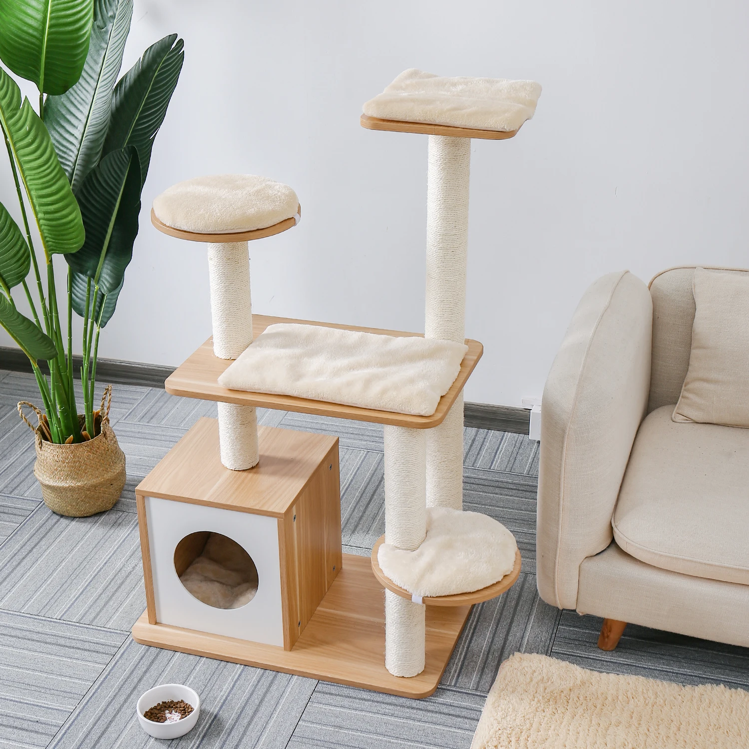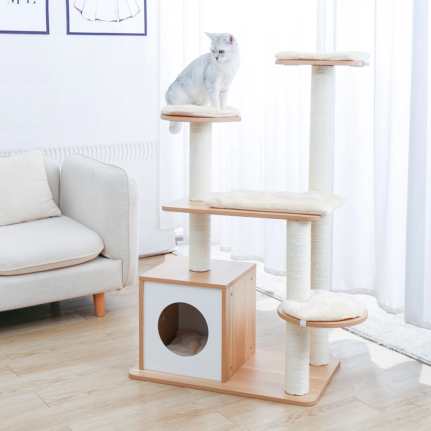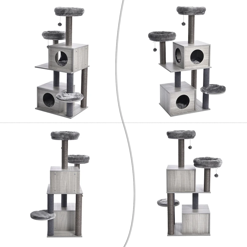 Центр активности кошек-Есть 1 домик для кошек, 4 платформы, 6 постов, покрытых сизалемЦарапины... Предлагаем котам множество вариантов acticity. 4 этажа дизайнСоответствует природе прыжков кошки. Они могут прыгать, отдыхать или игратьС друзьями в нем.