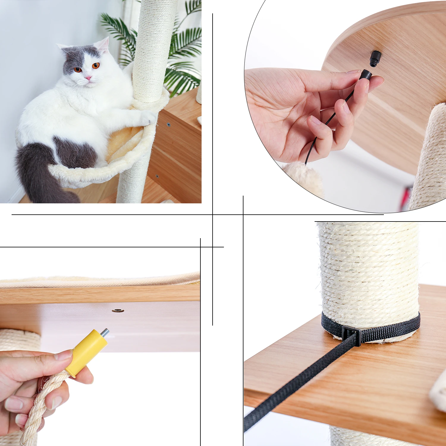 Материал высокого качества-Высокая плотность шпона, гладкая и прочная. Утолщенный Натуральный сизаль,Он может выдержать долгосрочные царапины кошек. Удобные подушкиПредлагаем кошкам глубокий сон.