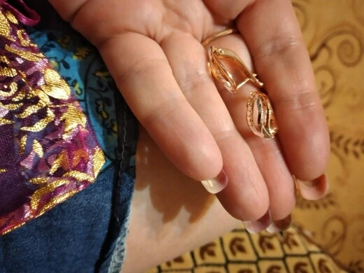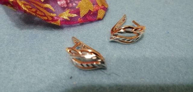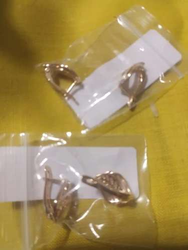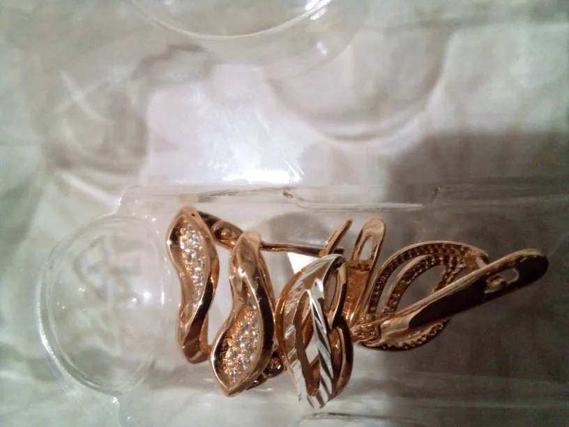 Серьги очень достойные, застёжка хорошая, плотно застегивается. На ушке сидят красиво, от золота не отличить. Рекомендую. Спасибо продавцу