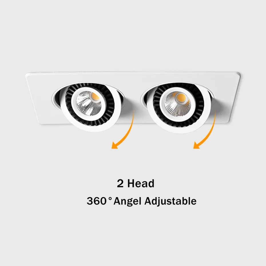 Светодиодный потолочный светильник с двойной головкой, встраиваемая лампа на 360 градусов, настраиваемая лампа для внутреннего освещения гостиной, спальни, кухни