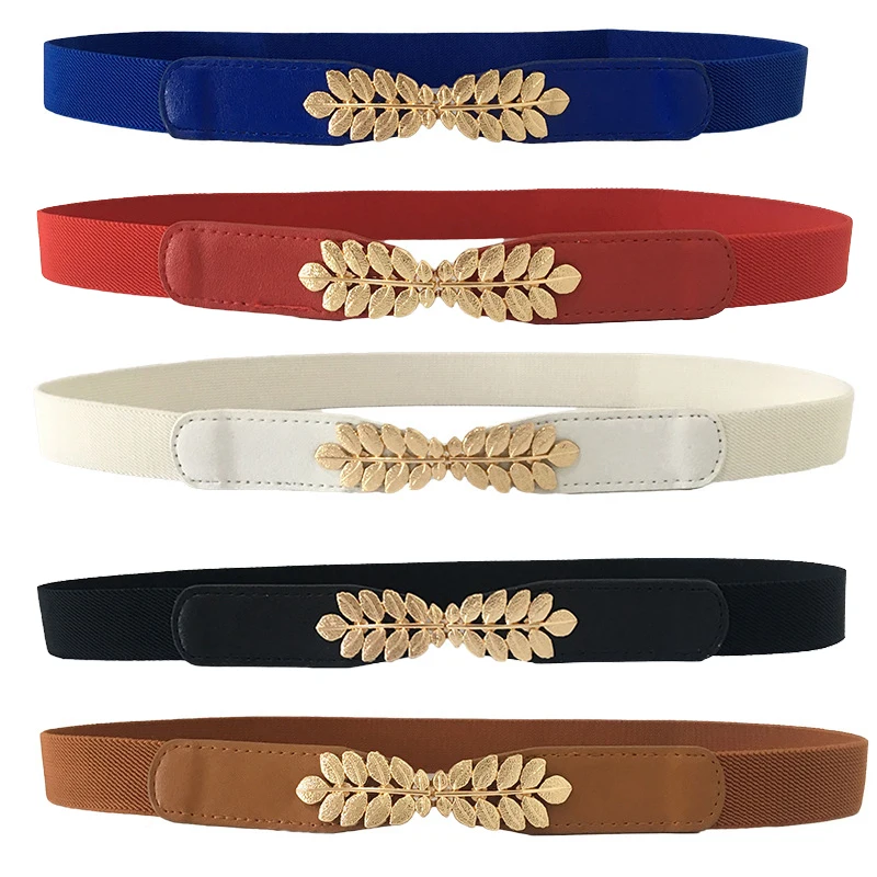 Женский эластичный пояс с листьями и пряжкой, Тонкий блестящий Узкий кожаный пояс для платья, белый, черный, синий, женский ремень pasek damski