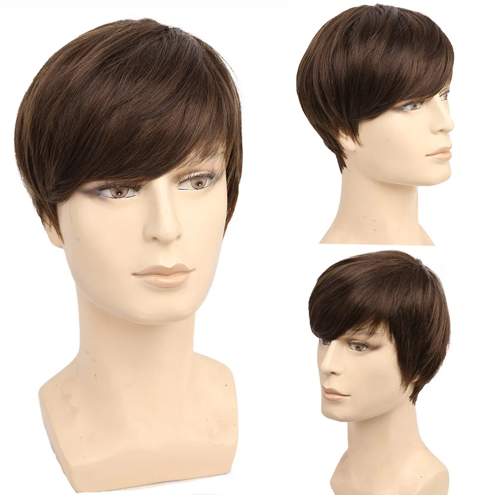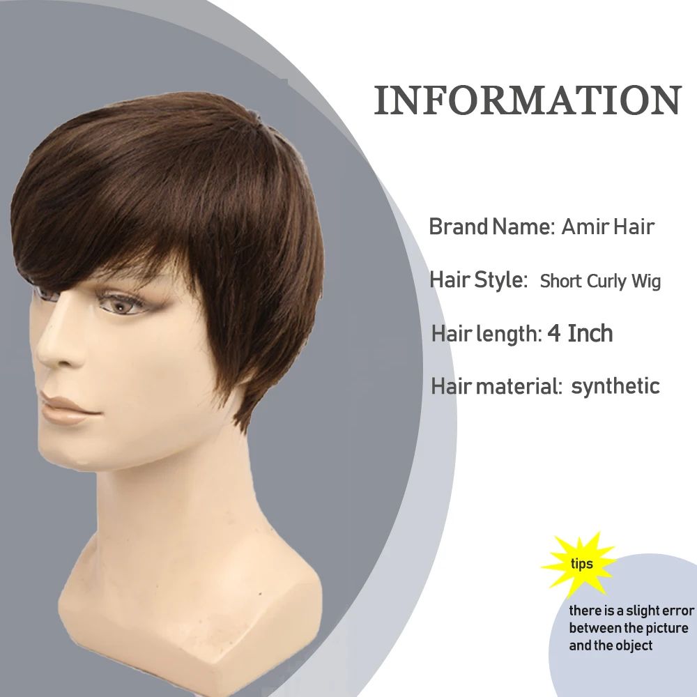 Amir короткие синтетические волосы парики Черный прямой Темно-коричневый парик мужские короткие синтетические волосы мужские парики темно-коричневого цвета натуральные волосы