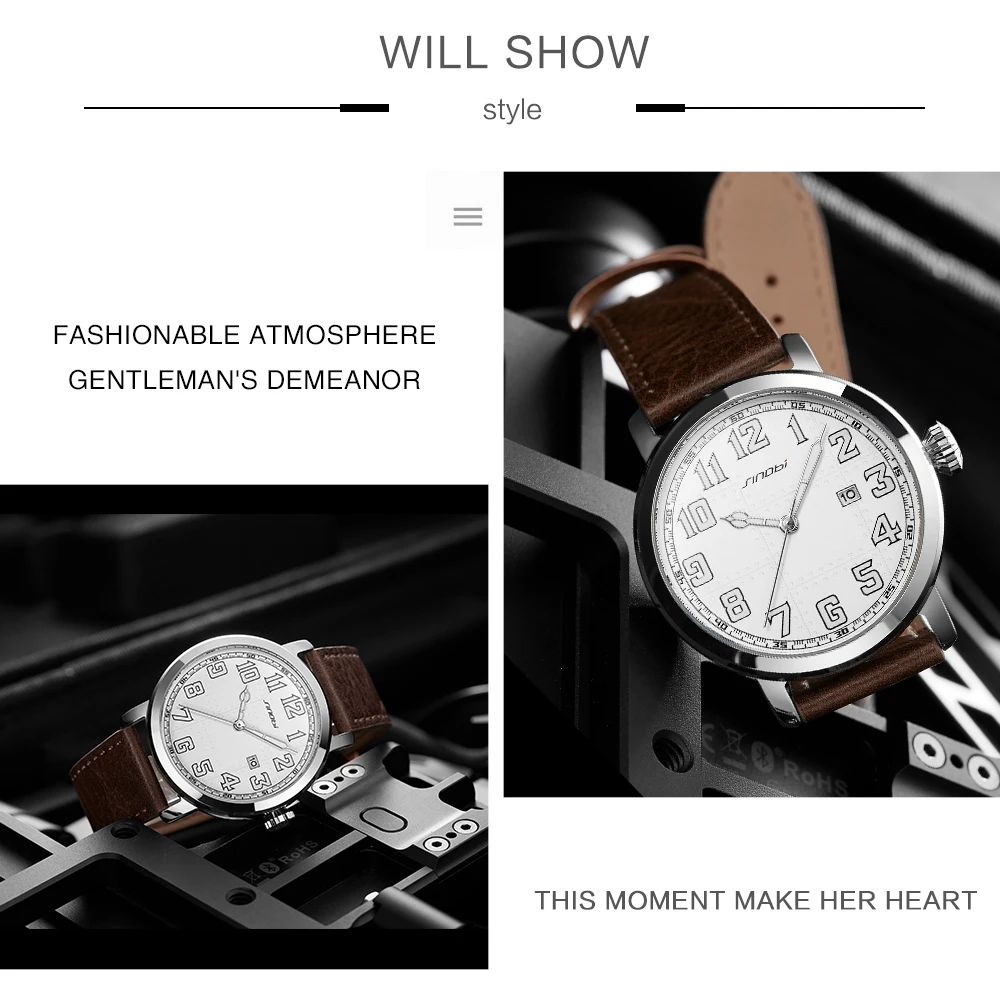 SINOBI Relogio Maculino Модные Бизнес Мужские часы повседневные Авто Дата мужские часы водонепроницаемые мужские часы Reloj Hombre