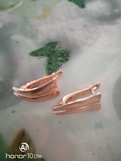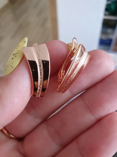 Красивые сережки, не маленькие, но и не большие. Смотрятся богато, выглядят как золотые. Желаю процветания