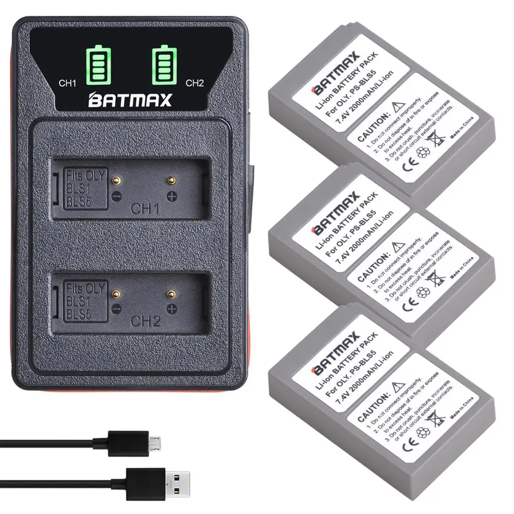 3 шт 2000mAh BLS-5 BLS5 Bls50 батарея + LED двойной USB зарядное устройство для Olympus OM-D E-M10, Mark III, ручка E-PL2, E-PL6, E-PM2, стилус 1