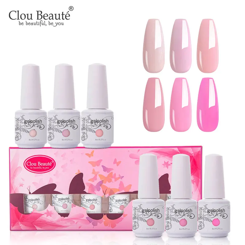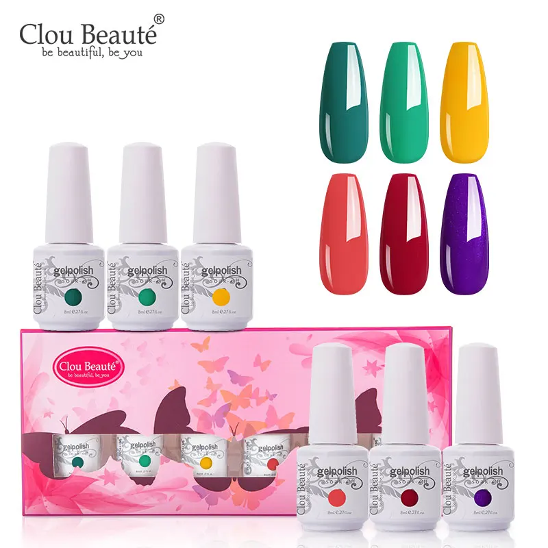 Clou Beaute 6 шт. Гель-лак для ногтей УФ светодиодный лак Блестящий лак для ногтей розовый красный цвет слоновая кость отмачиваемый Гель-лак набор 8 мл подарочная коробка
