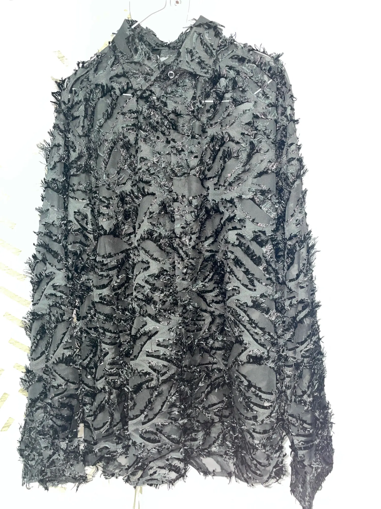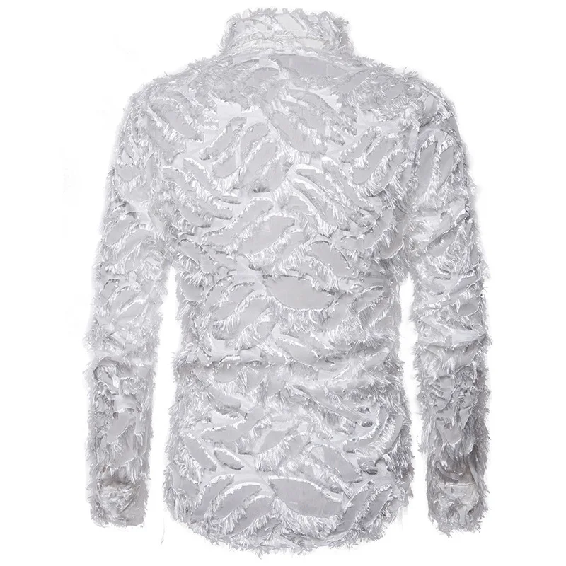 Мужская белая прозрачная рубашка с перьями для ночного клуба, Облегающая рубашка с длинным рукавом, Сексуальная кружевная рубашка для мужчин, костюм певицы для сцены, Homme XXL