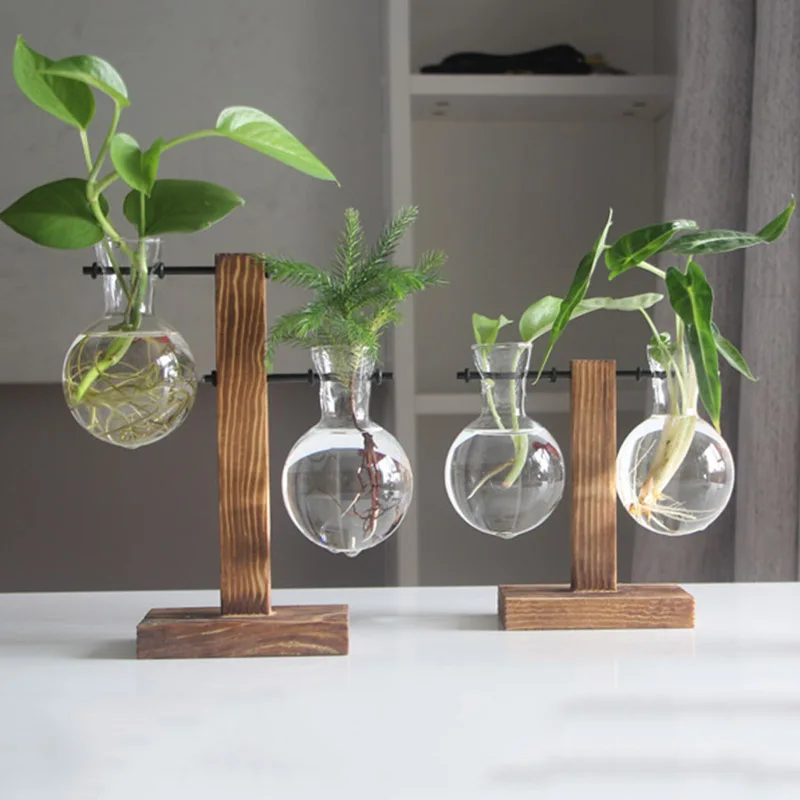 Креативная гидропонная ваза для растений, с деревянным каркасом, де...