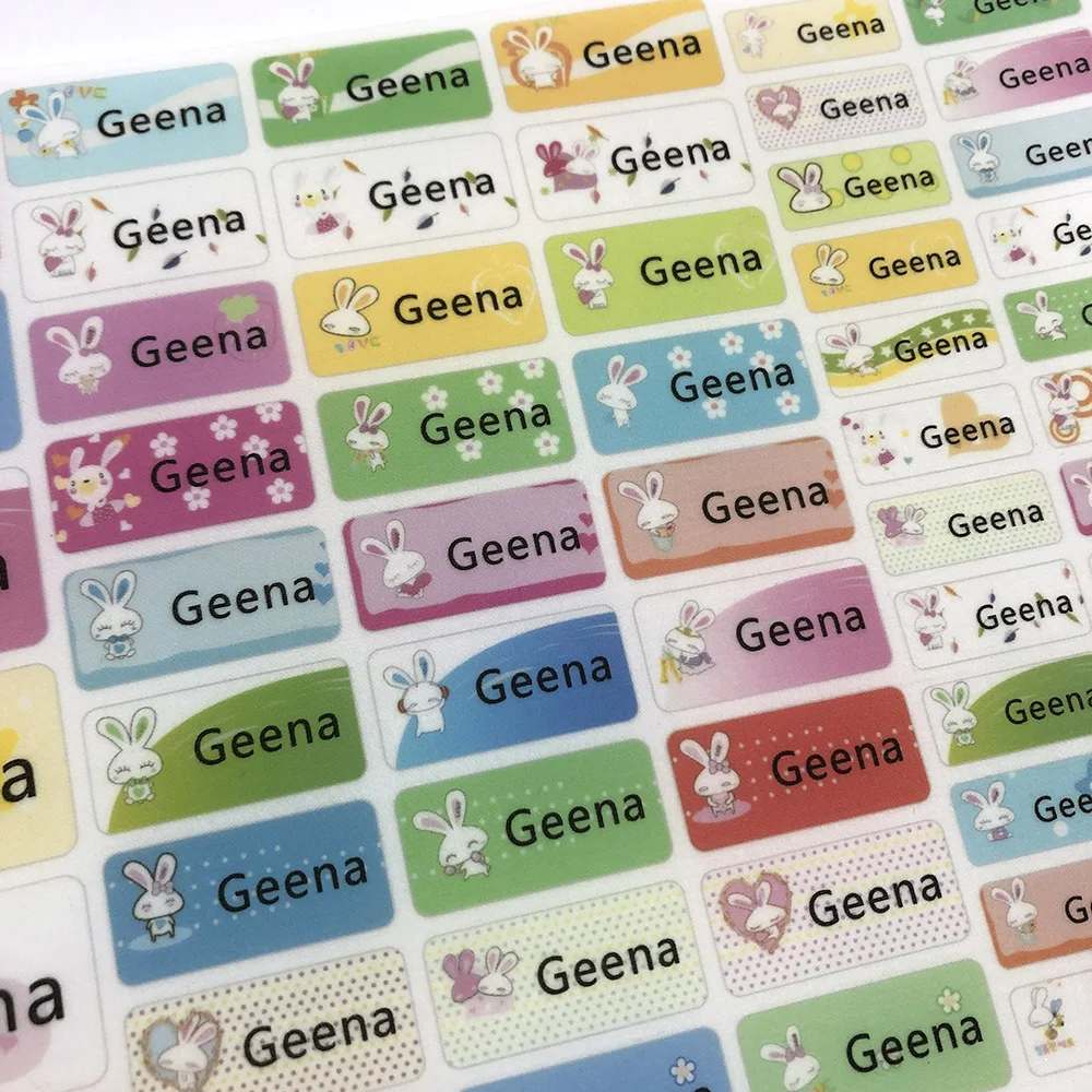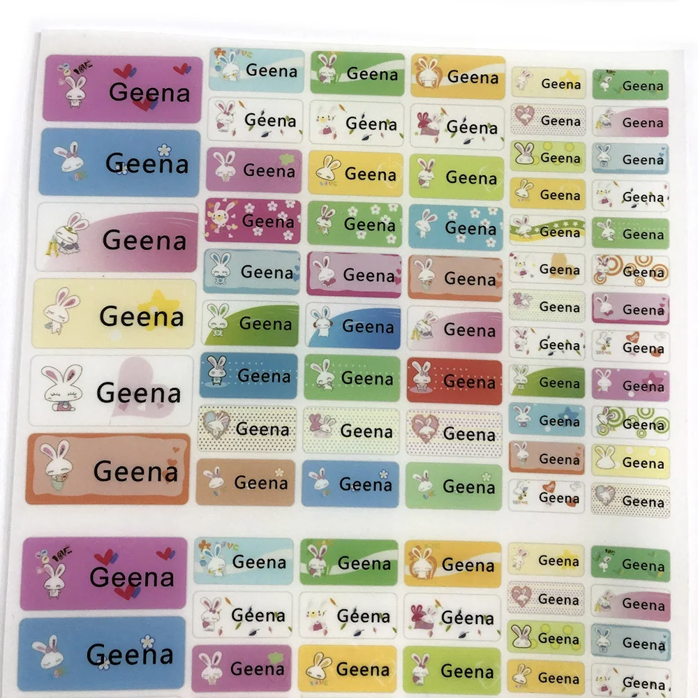 Наклейки с именем для девочек, милые наклейки с мультяшным Кроликом, персонализированные водонепроницаемые бирки для детской одежды, школьная форма