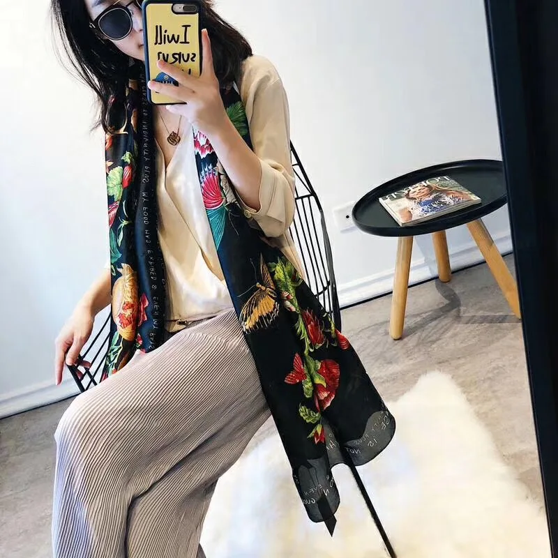 Дизайнерский роскошный брендовый женский шелковый шарф шали и палантины с бабочками и цветочным рисунком Бандана Платок пляжная Пашмина
