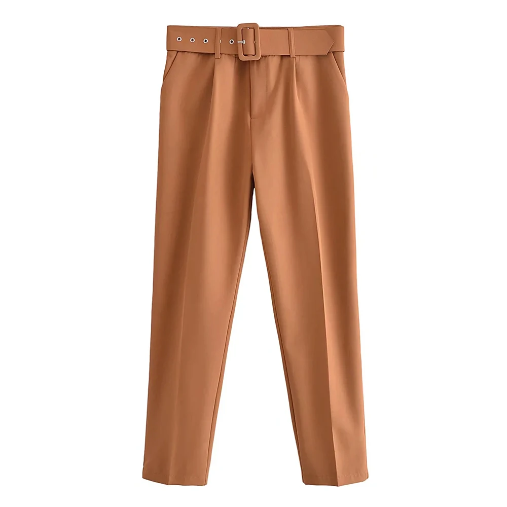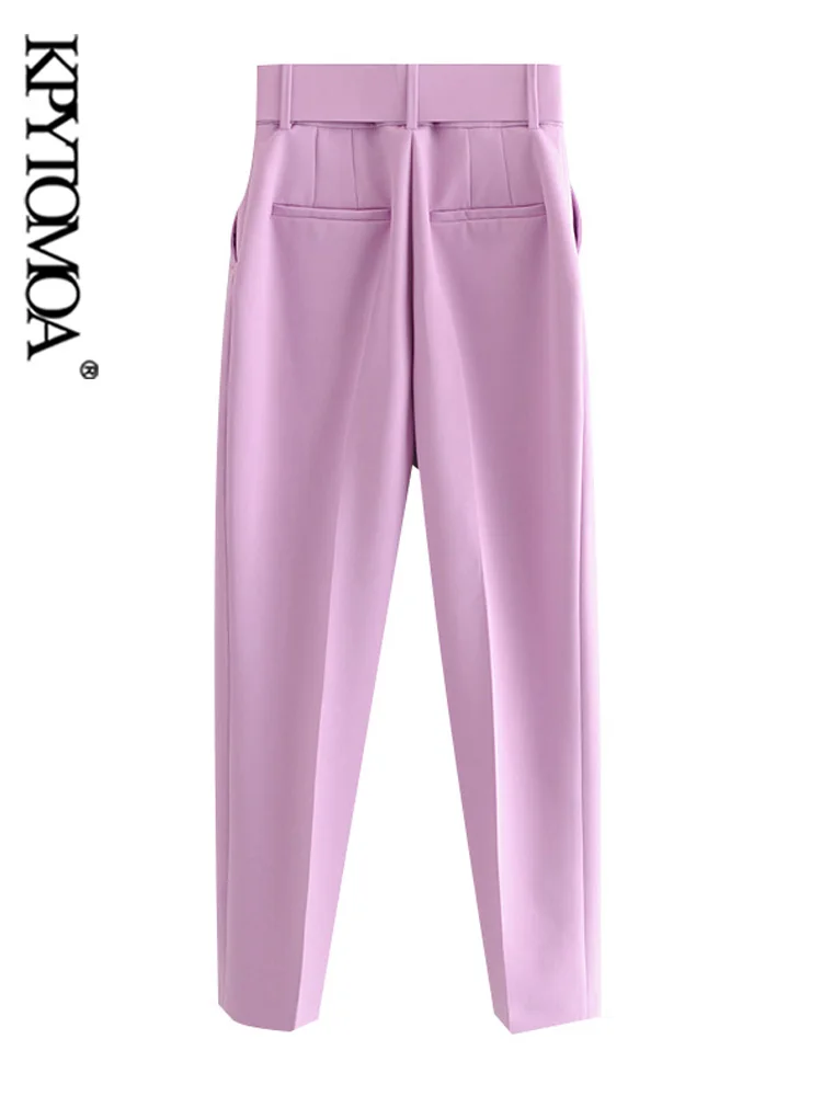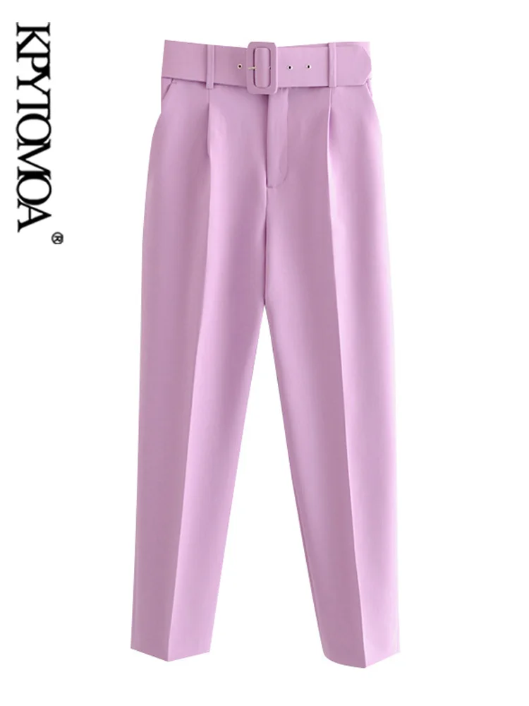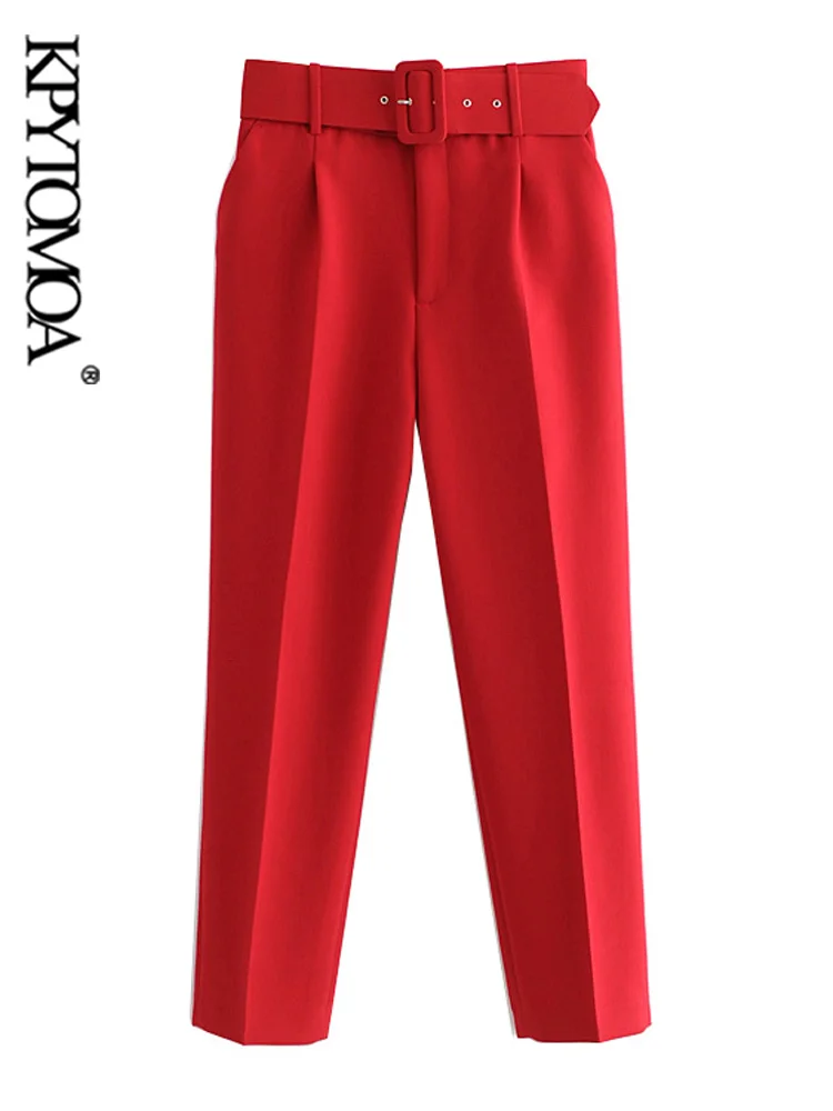 Женские шикарные модные брюки KPYTOMOA с поясом и боковыми карманами, офисная одежда, винтажные женские брюки до щиколотки на молнии с высокой талией