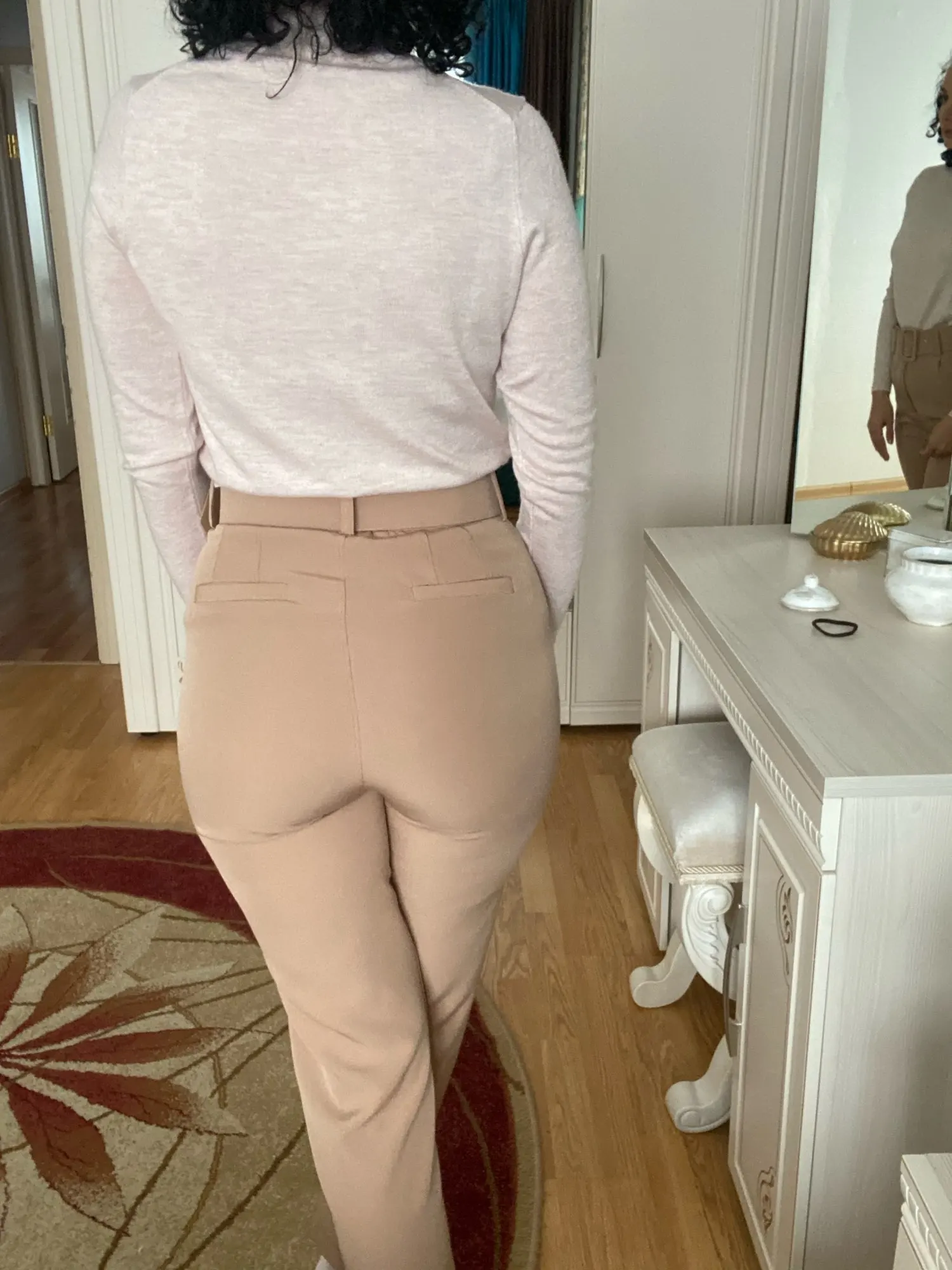 Заказ шел 2месяца. Упаковано все отлично. Цвет брюк благородный,соответствует фото. Ткань плотная, немного стрейч. Измерения бежевых брюк L отличаются от указанных в таблице. Талия=80см, Бедра =106см. Мне оказались очень велики. При выборе размера брюк этого цвета учитывайте эту разницу. Длина брюк с учётом ширины пояса =100см. Пошив очень аккуратный. Ни единой ниточки! Никакого запаха! Ткань плохо разглаживается. Продавец очень порядочный-вернул часть денег-понесу брюки ушивать в ателье. Рекомендую к покупке.