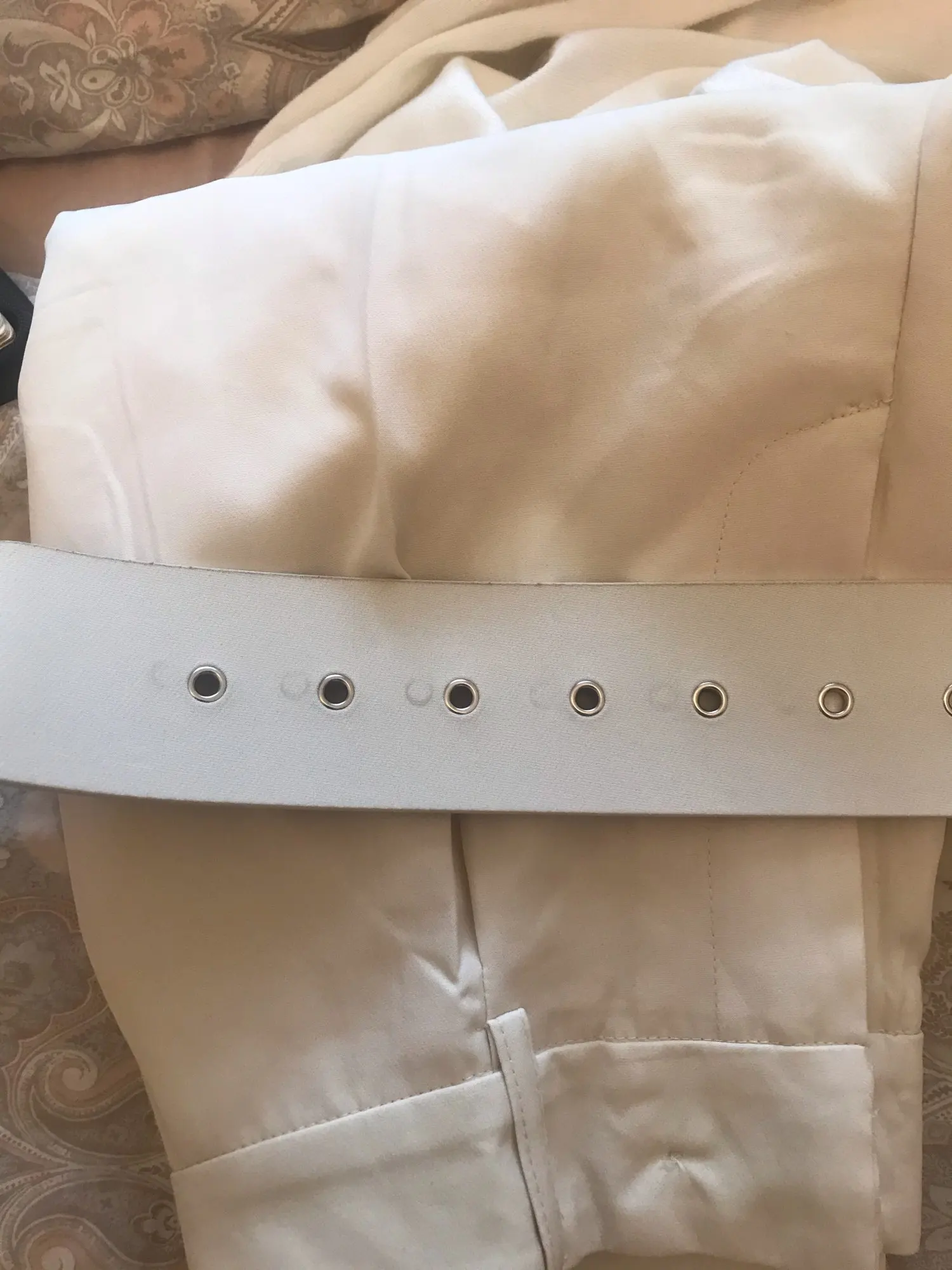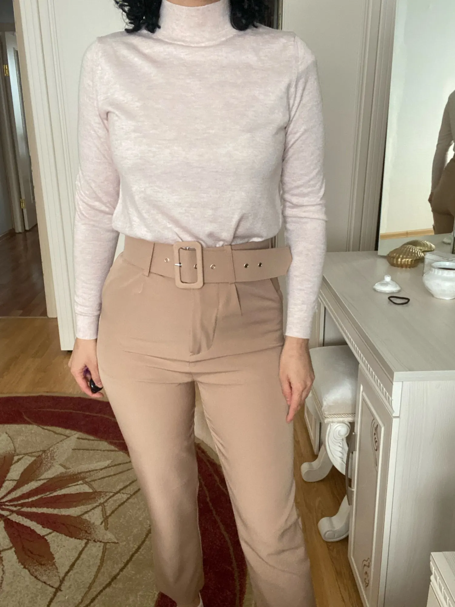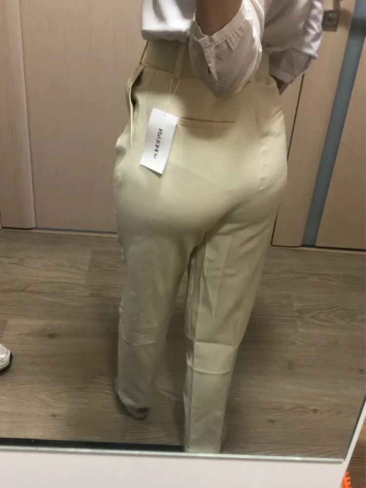 Заказала штаны 27.08 пришли 13.09 , товар пришёл в указанные сроки. Не знаю почему многие девочки жаловались на эти штаны, что они не белые, на фотографии продавца видно, что они молочного цвета. Мой рост 170 и они хорошо сели по длине , не короткие и я этому рада. Я взяла себе размер L, чтобы штаны на мне сидели свободно, я знала, что они будут мне большими в талии, но ремень прекрасно регулирует талию. Сделала фотографии как штаны с ремнём смотрятся и какая разница у меня в талии этого размера , если не надевать ремень. Сама ткань тоненькая, но она не выглядит дёшево,из минусов ужаснейший запах от штанов. К продавцу претензий нет, заказала у них ещё чёрные точно такие же