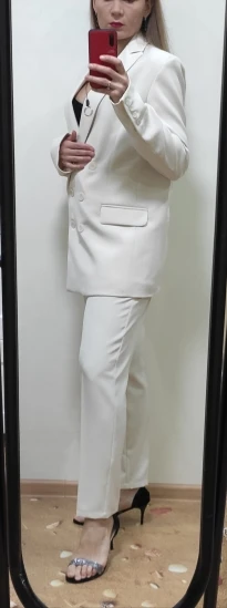 Брала костюмом, очень понравился, сшит ровно и аккуратно, ткань в меру плотная, строчки ровные. Мои параметры: рост 170 см, вес 64 кг, ОГ 90 см, ОТ 74 см, ОБ 95 см, сел немного оверсайз, так и хотела, плечи оказались большеваты, отдам в ателье, совсем не проблема. костюм очень красивый, цвет молочный, рекомендую! спасибо большое