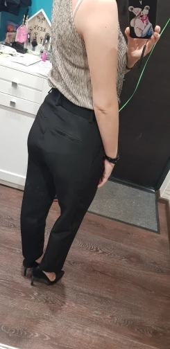 Доставка в Гомель 2 месяца и 4 дня, трек отслеживался. Покупала за 14,22$. На рост 163 полная длина. Об 93, от 76 размер S подходит отлично, в бедрах не узко, не облегает плотно, но и не висит. Чуть плотно в талии, но мне это не мешает. В крайнем случае, можно перешить застёжку. Ткань тонкая, гладится хорошо. Если есть живот, как у меня, его не скроет, наоборот, покажет. Хорошие классические брюки, мне нравятся