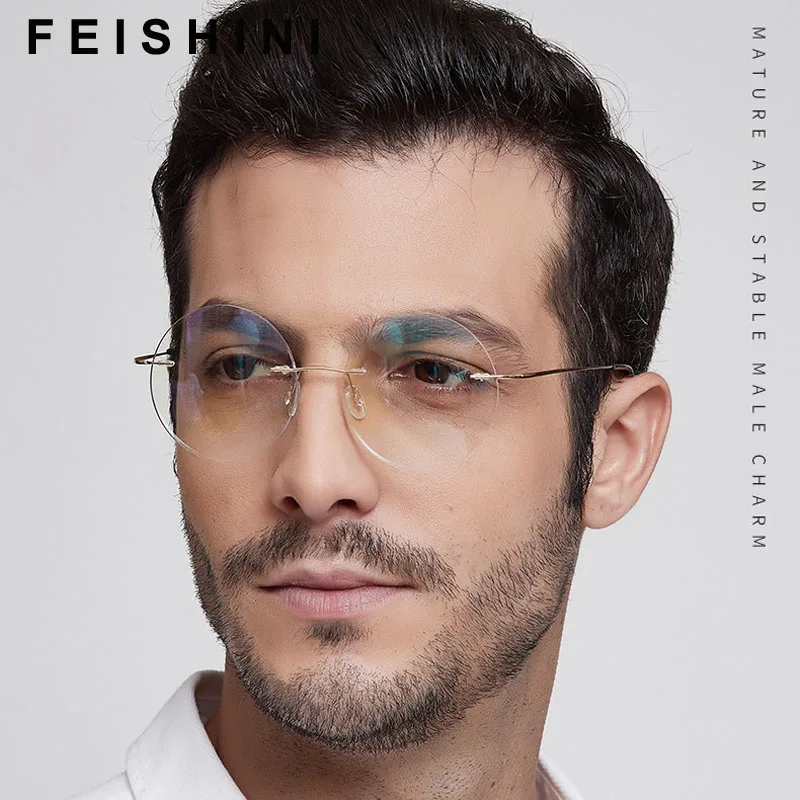 Круглые компьютерные очки Feishini без оправы, женские очки с защитой от излучения, металлические оправы унисекс, очки с защитой от синего света для мужчин